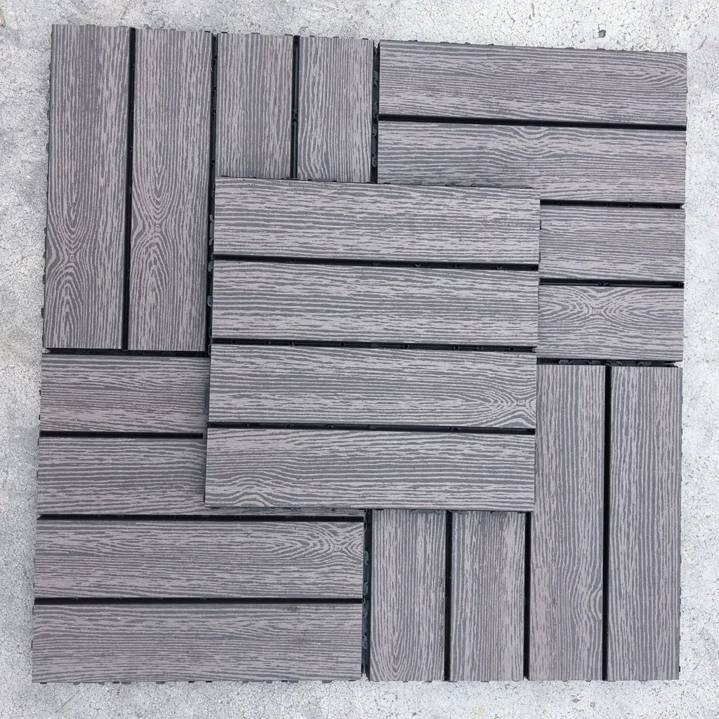 Perfect interlocking patio tiles, balcony tiles, bathroom, and any indoor or outdoor setting, and these interlocking tiles are just thin enough, they don’t obstruct doors, and they can fit any room to your requirements.Easy to Install: They easily click together like a puzzle, are rigid, and won’t slide about no matter the surface you put them on.Sturdy: It is made of high-quality PP material. It has a strong load-bearing capacity.Note: Please use it on a flat surfaceNote: Due to the light angle, there may be a certain color difference between the product and the real objectCreate the neat and professional surroundings that you want!When you don't want to or want to do the following things, our outdoor tiles can meet your requirements!!!1. don't want to tidy up cluttered patios or gardens.2. don't want to renovate the floor costly.3. want to make the rugged path smoother.4. want to beautify the ugly concrete floor.5. want to decorate your pet house?6. want to stay away from muddy roads, potholes, or wet lawns.7. want to make the Indoor and outdoor ground tidier.Why does our interlocking deck tiles flooring meet your need? Follow the composite deck tiles features as below:1. Suitable for laying on any solid ground---No site restrictions2. Simple and uniform appearance---Beautifying effect3.No problem for wet areas---Both indoor and outdoor use4. Simple installation or cuttable, no screws, drills, etc. needed---Easy DIY snap-together project5. Easy to relocate, move to places you want---Portable6. Thick and solid, structural stability---Good weight-bearing capacityPackage contains:44pcs composite interlocking deck tiles flooringSingle Size: 12" length x 12" width x 0.75" heightAttention!!!!1. Be careful when cutting the patio tiles.2. The Brown floors fade under the sun, and after a long time fading, they turn to bluish gray eventually.