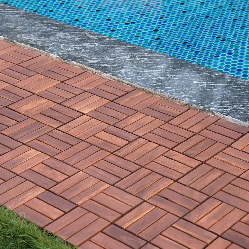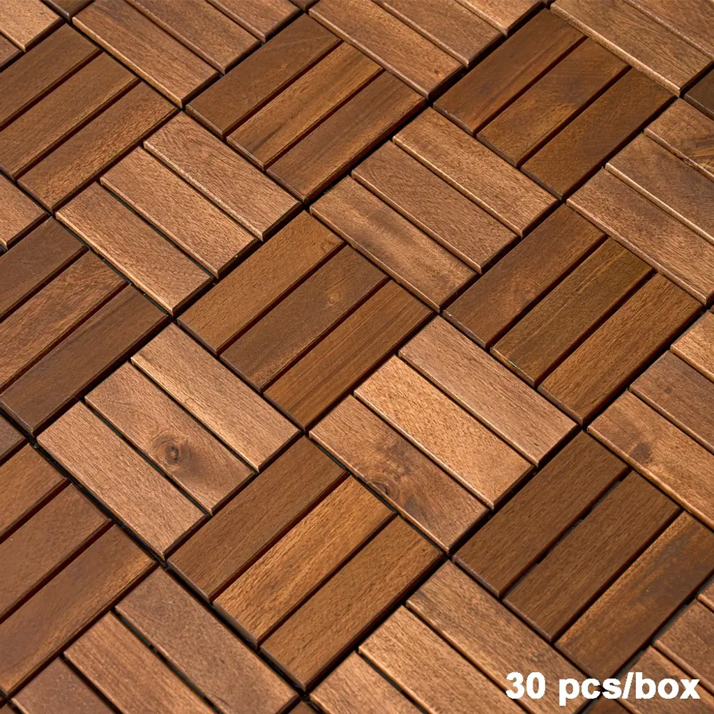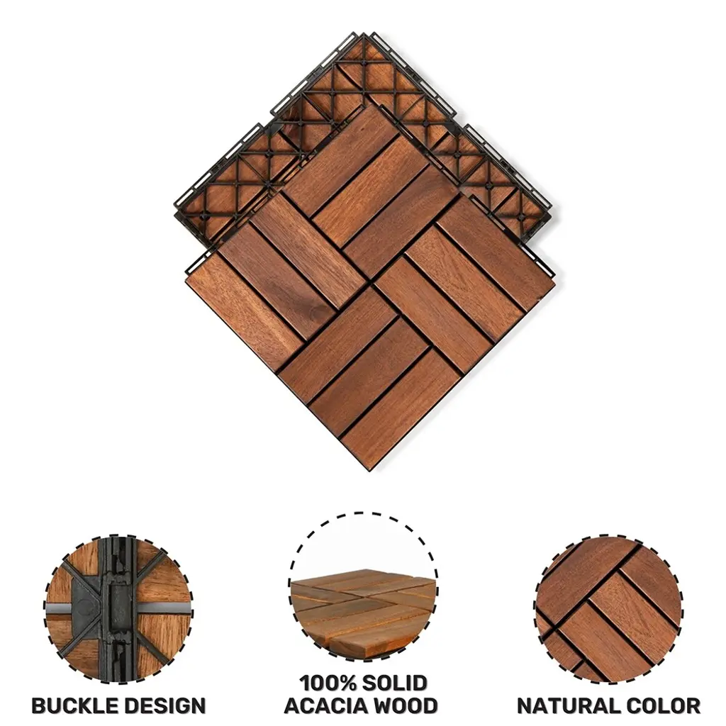 1 Ft. X 1 Ft. Square Acacia Wood Quick Interlocking Patio Deck Tiles - 1 Ft. X 1 Ft. - (Box Of 10)