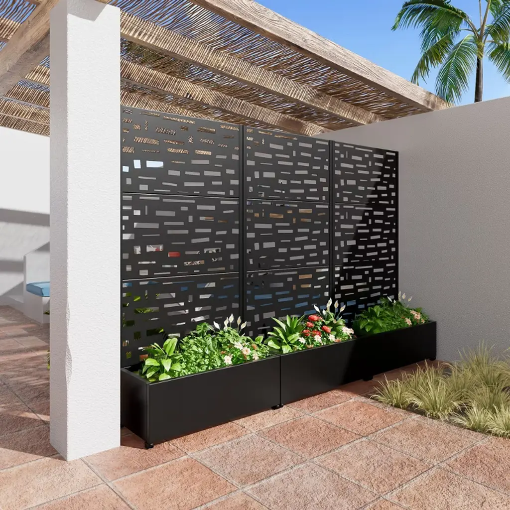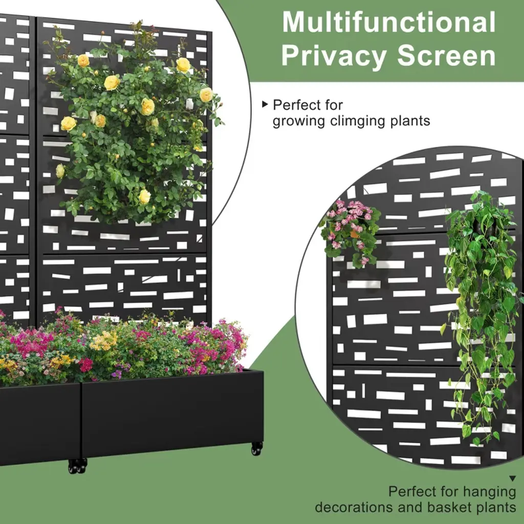 1 Piece Wide Edge Wrought Iron Black Outdoor Planting Box With Climbing Frame