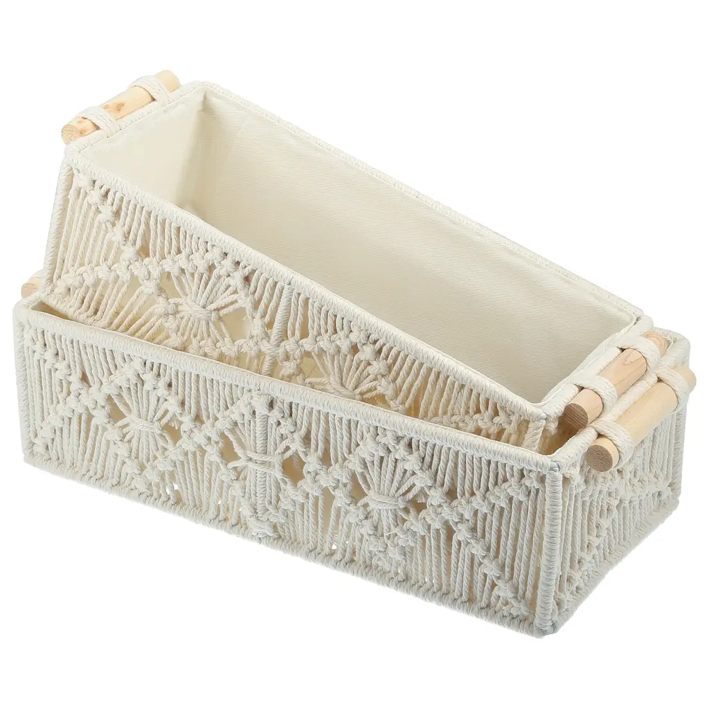 1 Set Woven Baskets Decor Box Macrame Storage Baskets For Home Wood Cotton - Brown