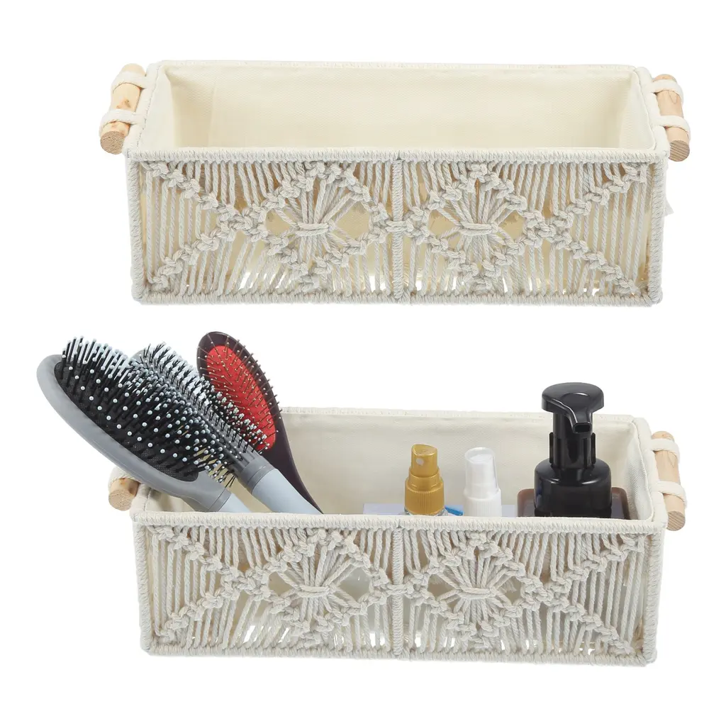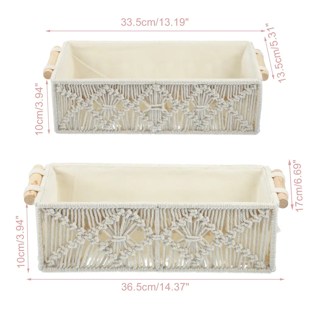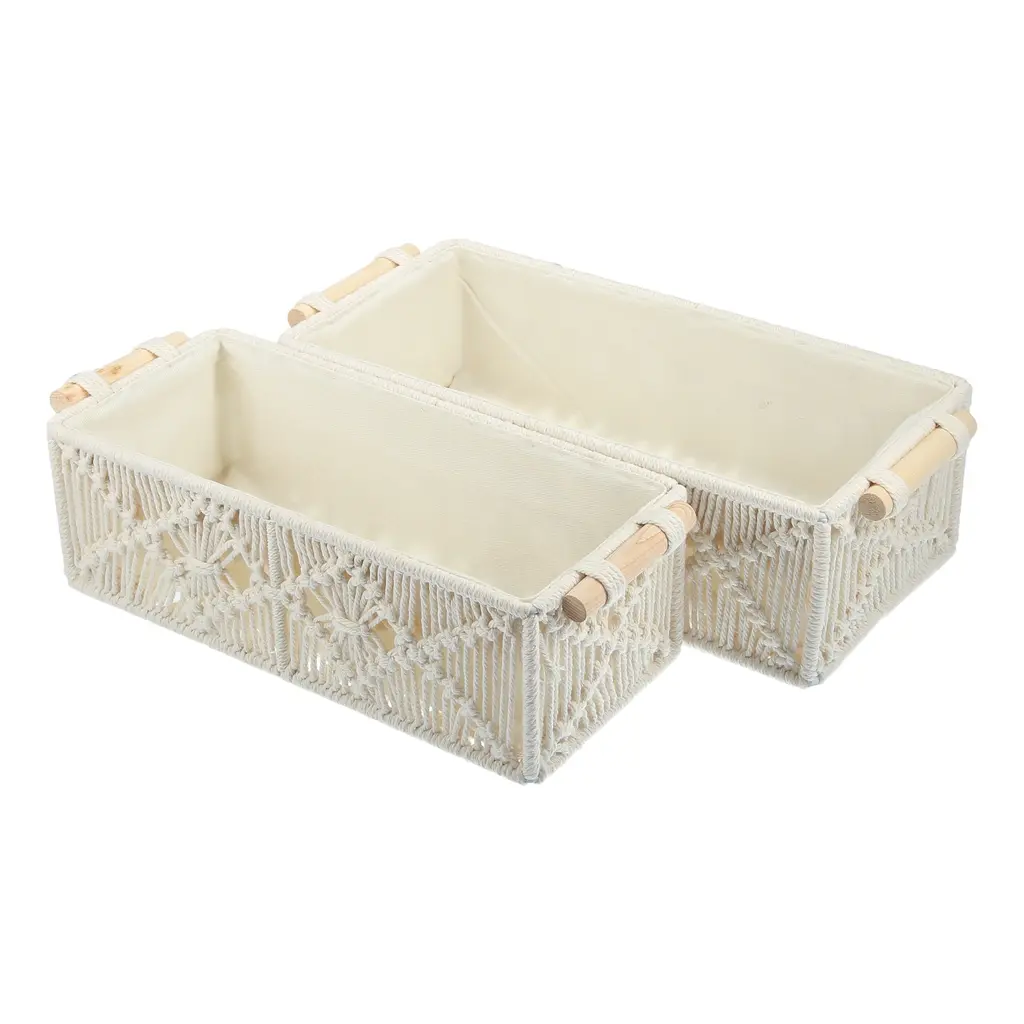 1 Set Woven Baskets Decor Box Macrame Storage Baskets For Home Wood Cotton - Gray