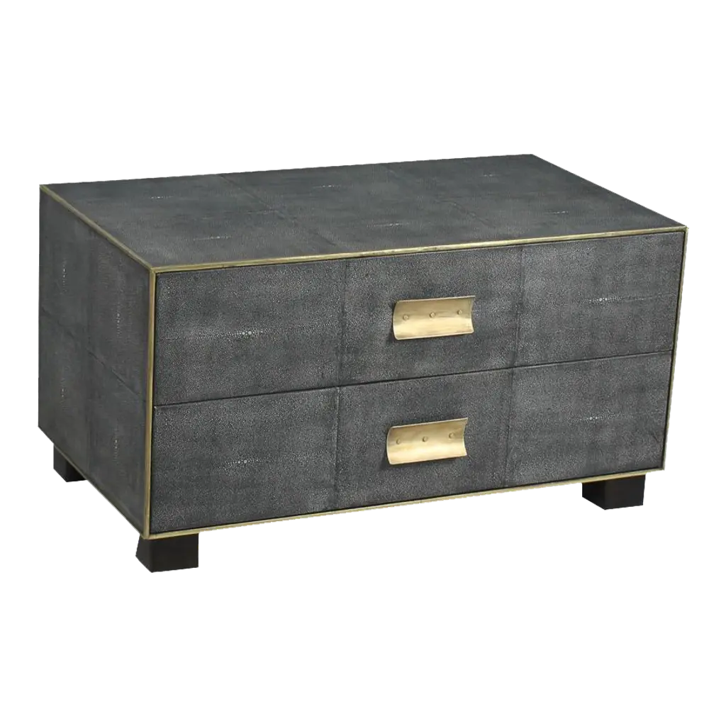 This impressively textured box shows off a clean-lined silhouette and black velvet-lined interior.