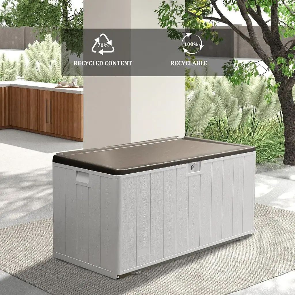 110gallon Lockable Waterproof And Uv Resistant Outdoor Storage Box, Used For Storing Outdoor Garden Tools And Swimming Pool Accessories, White