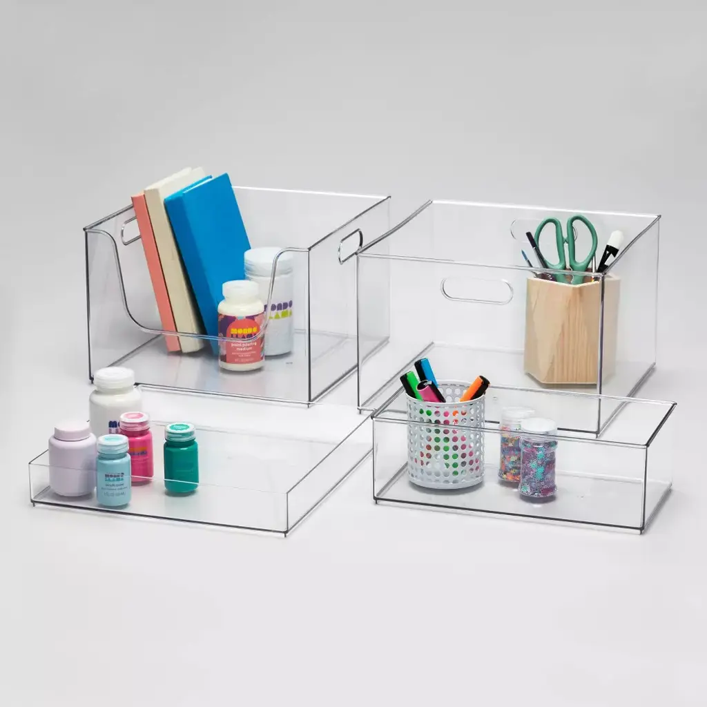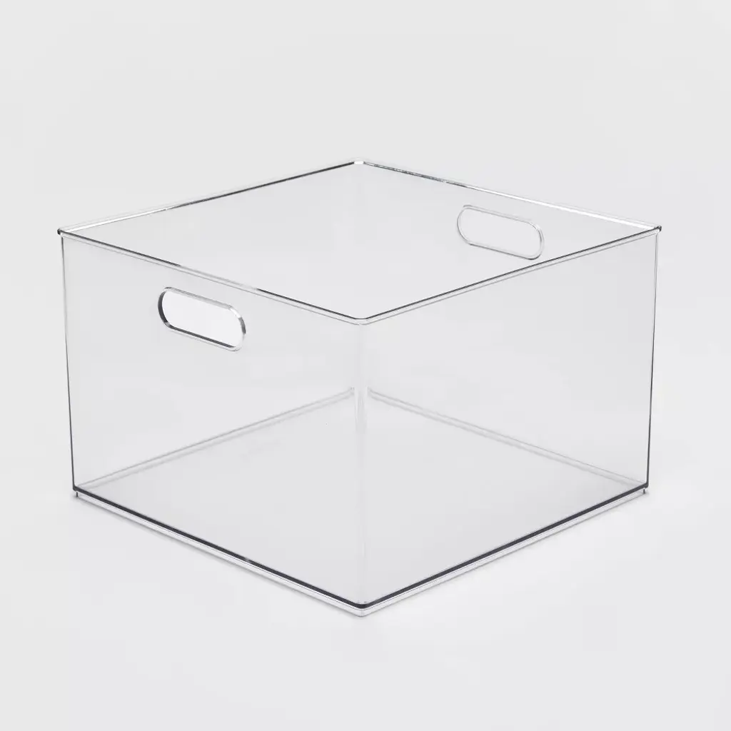 From bedrooms to the linen closet to your home office and more, it's easy to keep your home organized with the 12 x 12 x 8 All-Purpose Storage Bin from Brightroom™. This plastic storage bin is a great size to hold anything from washcloths to files to craft supplies, making it a great organizational solution for any room in your home. The bin is designed to be stacked up to three high, so you can combine several to best suit your organizational needs, and smooth grip handles cut into the sides make the bin easy to carry from one room to another. With a clear construction, the bin lets you see its contents at a glance for added convenience.Brightroom™ started with a simple truth: When you’ve got it together, you feel better. Our versatile designs reveal the possibility in every closet, cupboard and drawer, and work together to create brilliant ways to organize your every day.Storage Bin Dimensions: 12''L x 12''W x 8''HTop width: 11.65 inchesBottom width: 12 inchesInterior height: 7.69 inchesInterior width: 11.51 inchesInterior length: 11.51 inches