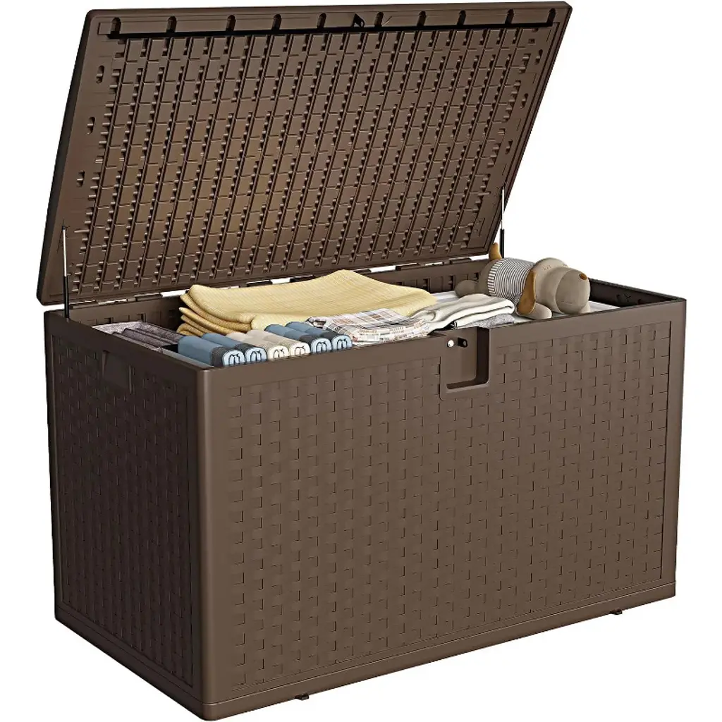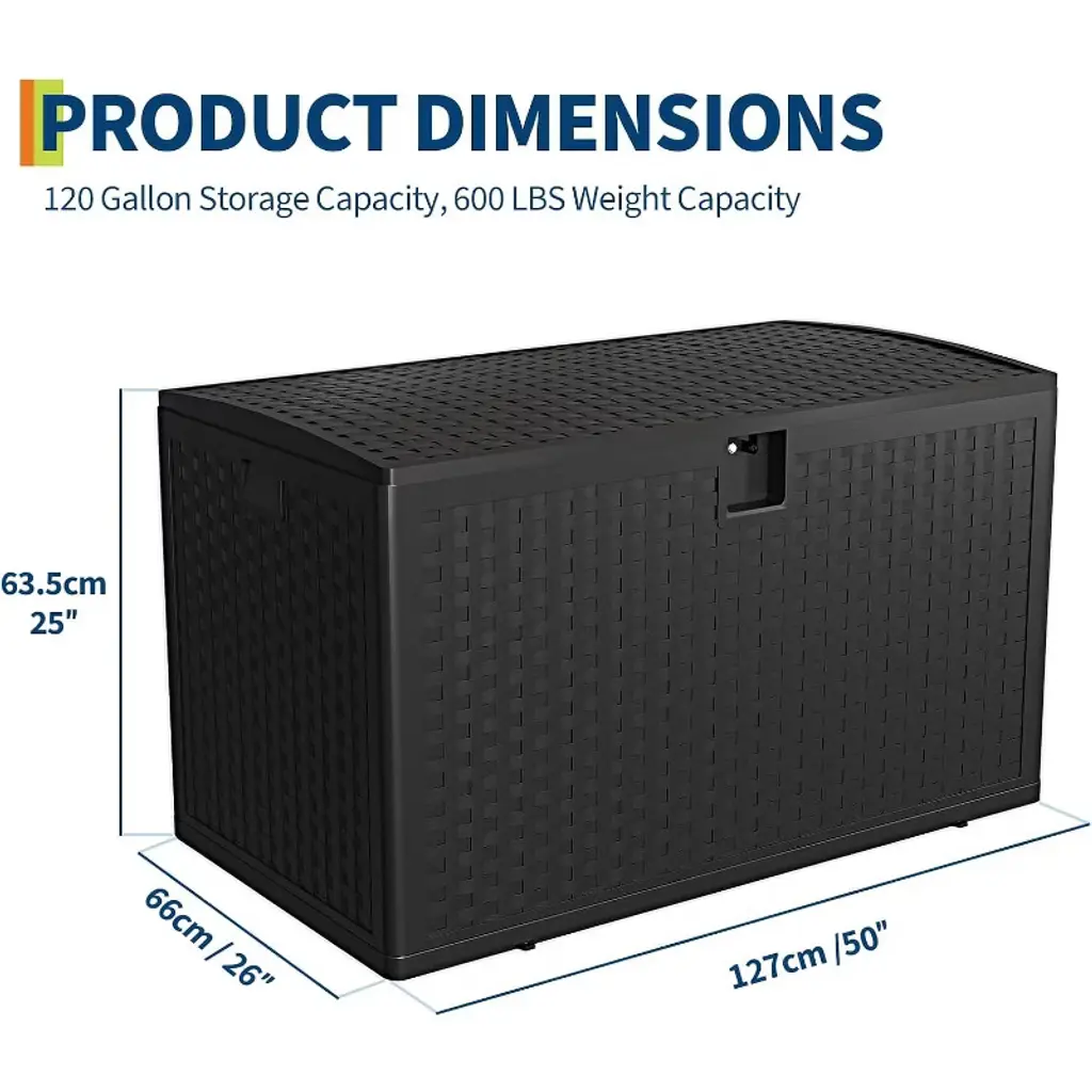 120-gallon Lockable Outdoor Storage Box W/waterproof Lid & Side Handles - Deck Box For Garden, Pool, Patio & Backyard Accessories,black