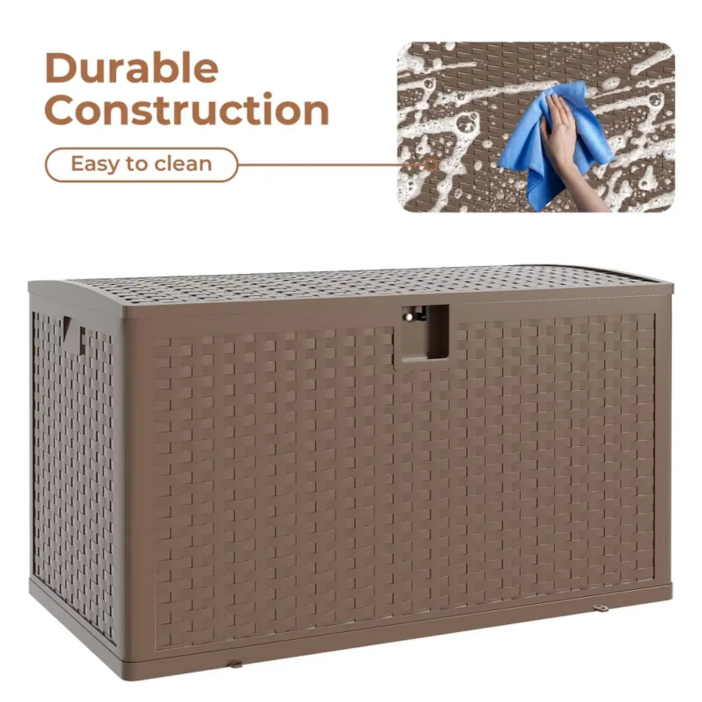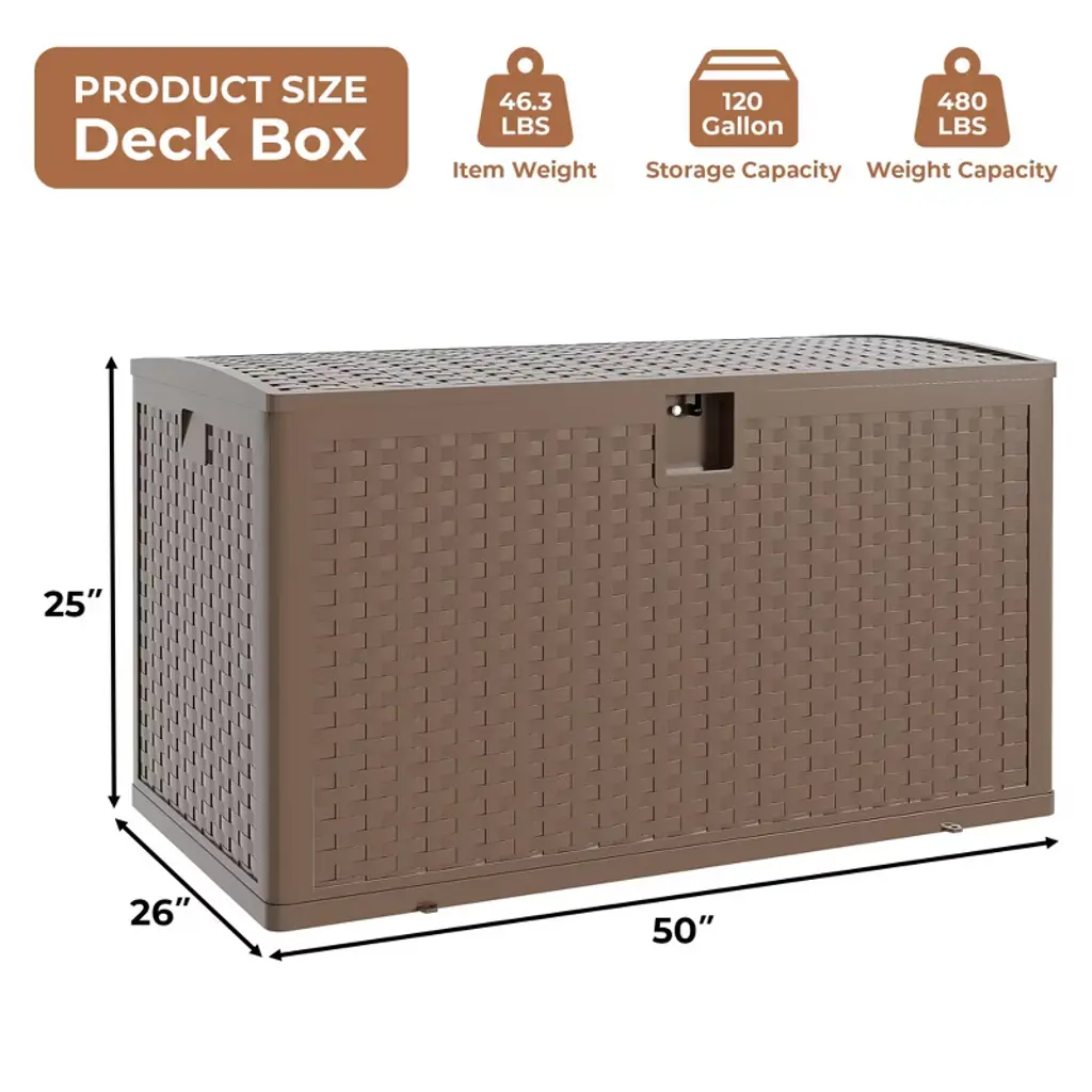120 Gallon Outdoor Resin Deck Box, Waterproof & Lockable Storage Container, Large Patio Storage Bench, Brown