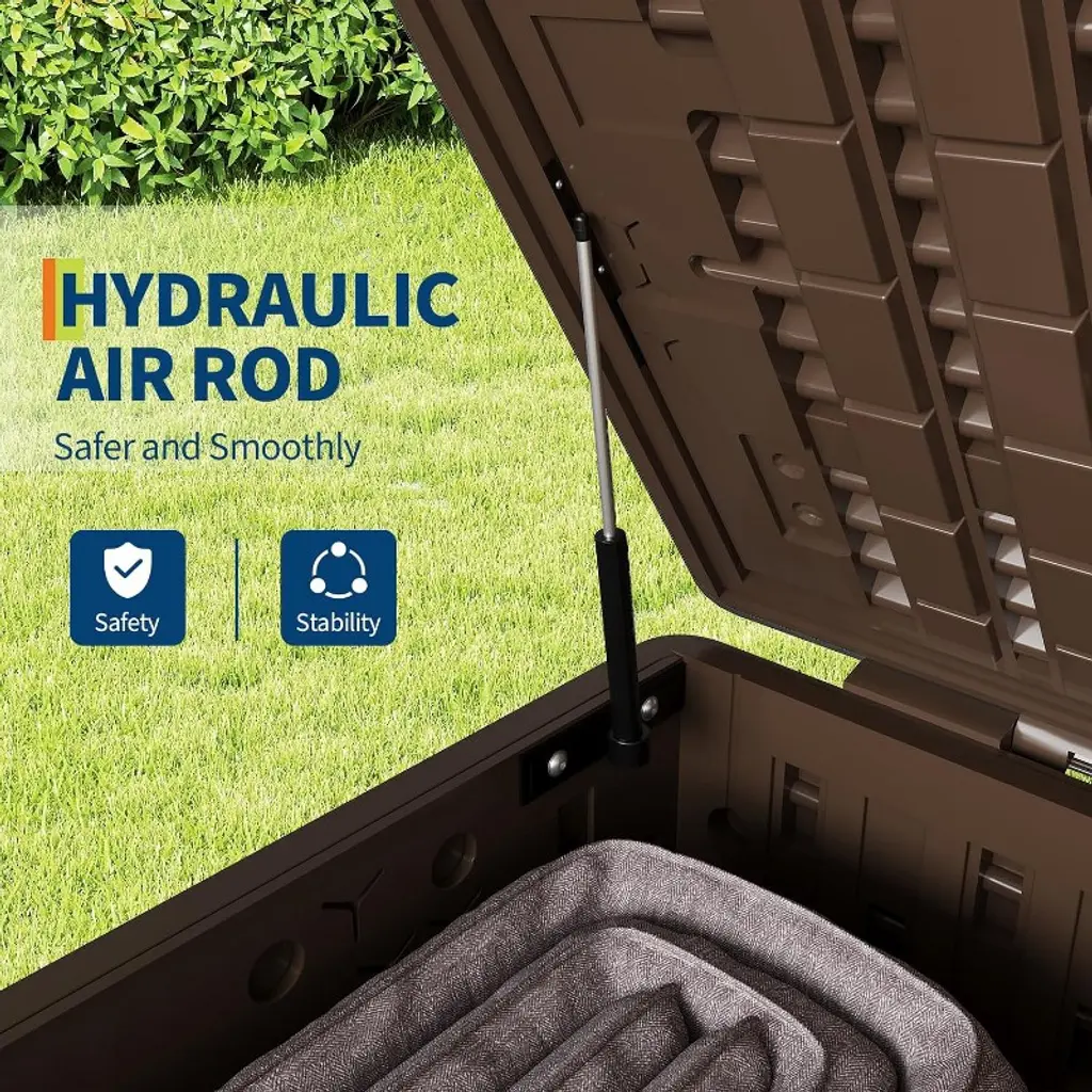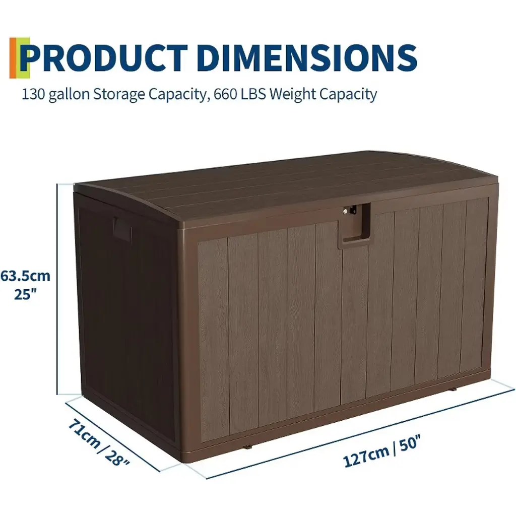 Transform Your Outdoor Space with Our 130 Gallon Outdoor Storage Box Keep your outdoor area organized and stylish while protecting your belongings with our 130 Gallon Outdoor Storage Box. Designed for versatility and durability, this weatherproof storage solution is perfect for a variety of uses, whether you need to store outdoor cushions, gardening tools, or pool supplies. Why Our Storage Box Stands Out: Spacious & Versatile: The generous 130-gallon capacity ensures you have enough room for all your outdoor essentials. Its versatile design allows it to double as a side table, additional seating, or even a footrest, enhancing both function and aesthetics in your patio or garden. Durable Weather Resistance: Constructed from high-quality resin, this storage box offers exceptional protection from the elements. Its weather-resistant build not only prevents mois*ture and rust but also safeguards against fading from UV rays. With minimal maintenance, your items will remain in pristine condition all year round. User-Friendly Features: The innovative shock-absorbing hinges prevent the lid from slamming shut, ensuring safety during frequent access. A lockable lid provides peace of mind, while ergonomic side handles make lifting and moving effortless. Quick Assembly & Portability: Our KD design simplifies assembly—no tools are needed, and one person can put it together in minutes. Weighing only 51 lbs, this storage box is easy to reposition according to your needs, whether indoors or outdoors. Stylish Yet Practical: The sleek and modern design fits seamlessly into any outdoor setting, enhancing your patio or garden decor. With its robust construction and multi-functional capabilities, this storage box is the perfect solution for keeping your area organized and inviting. Specifications: Dimensions: 50"L x 26"W x 28"H Weight Capacity: Holds up to 660 lbs Material: High-quality weather-resistant resin