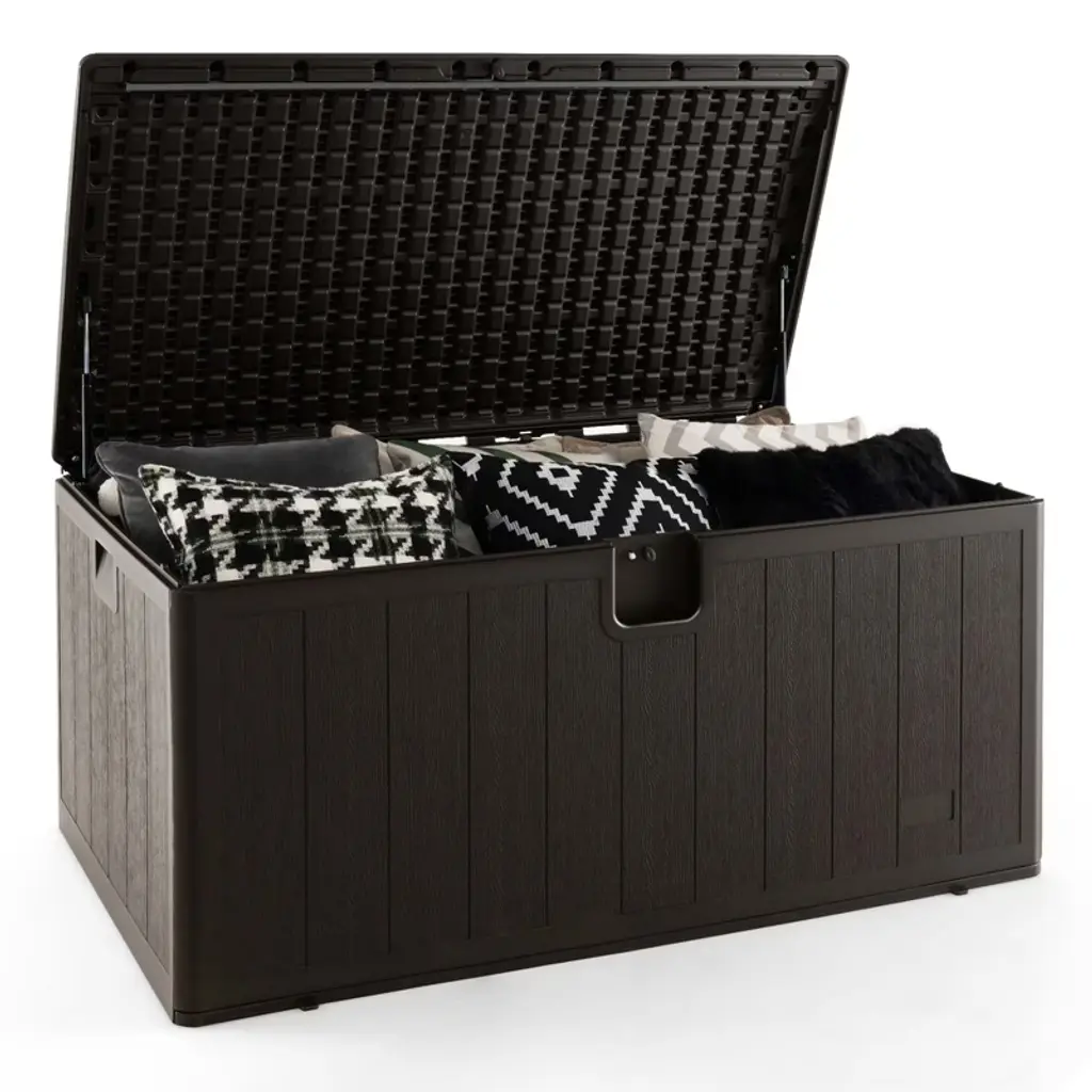Transform Your Outdoor Space with Our 130 Gallon Outdoor Storage Box Keep your outdoor area organized and stylish while protecting your belongings with our 130 Gallon Outdoor Storage Box. Designed for versatility and durability, this weatherproof storage solution is perfect for a variety of uses, whether you need to store outdoor cushions, gardening tools, or pool supplies. Why Our Storage Box Stands Out: Spacious & Versatile: The generous 130-gallon capacity ensures you have enough room for all your outdoor essentials. Its versatile design allows it to double as a side table, additional seating, or even a footrest, enhancing both function and aesthetics in your patio or garden. Durable Weather Resistance: Constructed from high-quality resin, this storage box offers exceptional protection from the elements. Its weather-resistant build not only prevents mois*ture and rust but also safeguards against fading from UV rays. With minimal maintenance, your items will remain in pristine condition all year round. User-Friendly Features: The innovative shock-absorbing hinges prevent the lid from slamming shut, ensuring safety during frequent access. A lockable lid provides peace of mind, while ergonomic side handles make lifting and moving effortless. Quick Assembly & Portability: Our KD design simplifies assembly—no tools are needed, and one person can put it together in minutes. Weighing only 51 lbs, this storage box is easy to reposition according to your needs, whether indoors or outdoors. Stylish Yet Practical: The sleek and modern design fits seamlessly into any outdoor setting, enhancing your patio or garden decor. With its robust construction and multi-functional capabilities, this storage box is the perfect solution for keeping your area organized and inviting. Specifications: Dimensions: 50"L x 26"W x 28"H Weight Capacity: Holds up to 660 lbs Material: High-quality weather-resistant resin