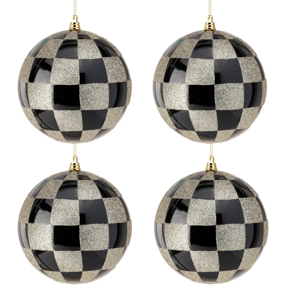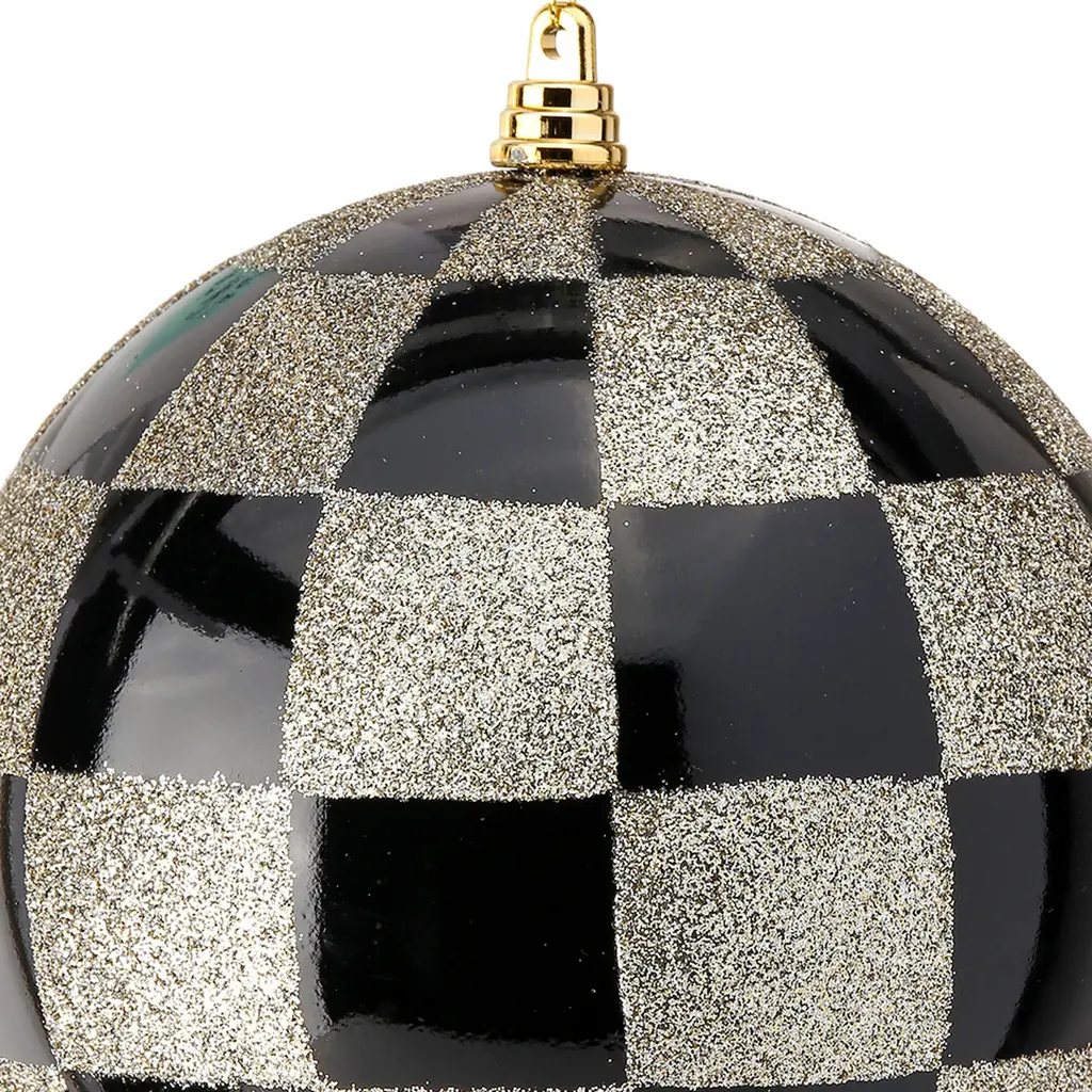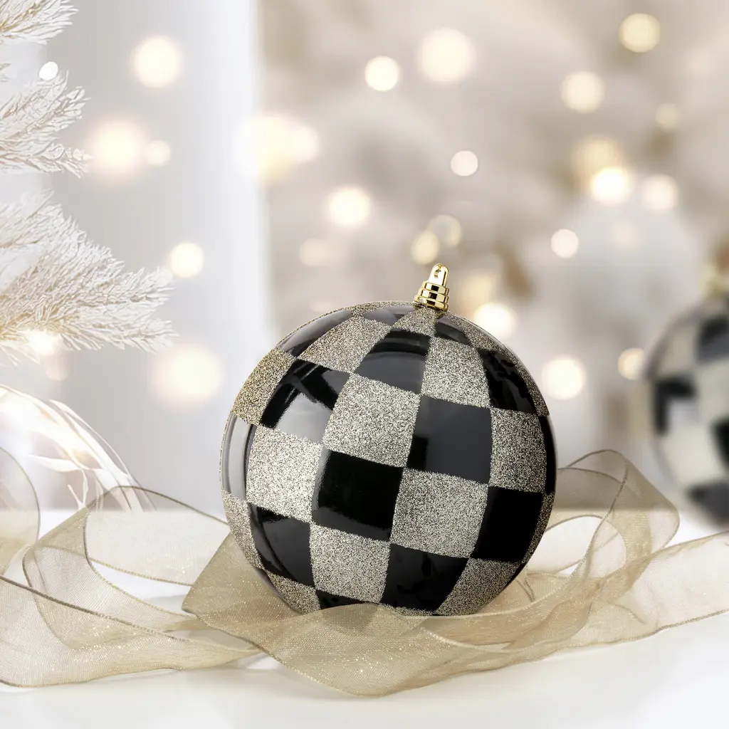 150mm Shatterproof Plastic Check And Glitter Ball Ornament Box Of 2 - Black