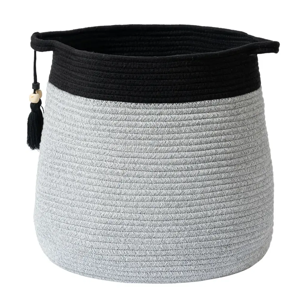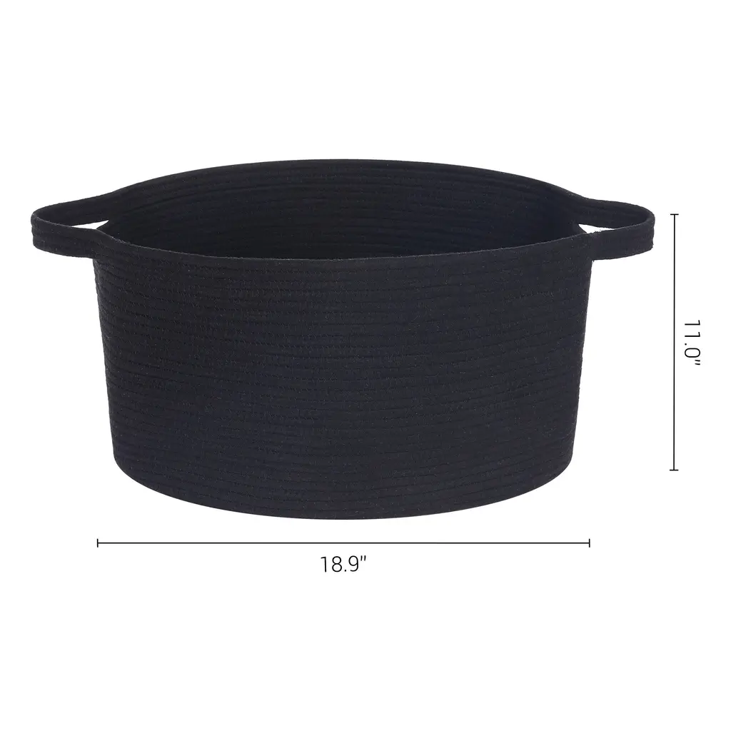 The Coiled Rope Bin from Brightroom™ perfectly balances function and style for a storage solution that'll fit any room in your home. This decorative basket is made up of coils of charcoal-hued rope accented with tan leather handles for a simple yet chic look you'll love to have on display. At 14 inches by 17 inches by 17 inches, the basket is a great size for stashing a throw blanket or two next to the sofa, holding stuffies in a playroom or keeping shoes off the floor in a closet. Wherever you choose to place it, you'll appreciate how easily the neutral charcoal and tan color combo coordinates with your current color palette.Brightroom™ started with a simple truth: When you’ve got it together, you feel better. Our versatile designs reveal the possibility in every closet, cupboard and drawer, and work together to create brilliant ways to organize your every day.Top Width: 17"Bottom Width: 13"Interior Height: 13.875"Interior Width: Top 16.5", Bottom 12.5"Interior Length: Top 16.5", Bottom 12.5"