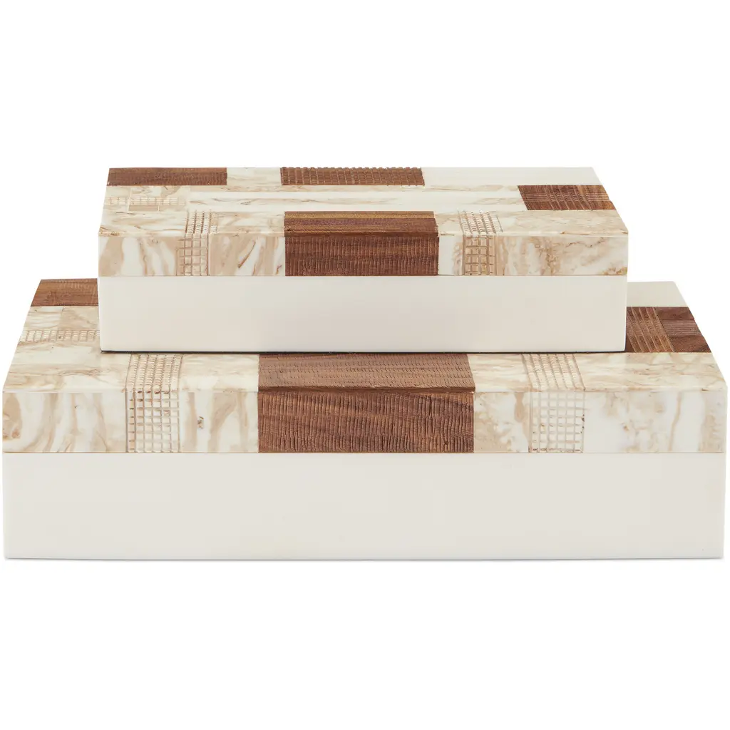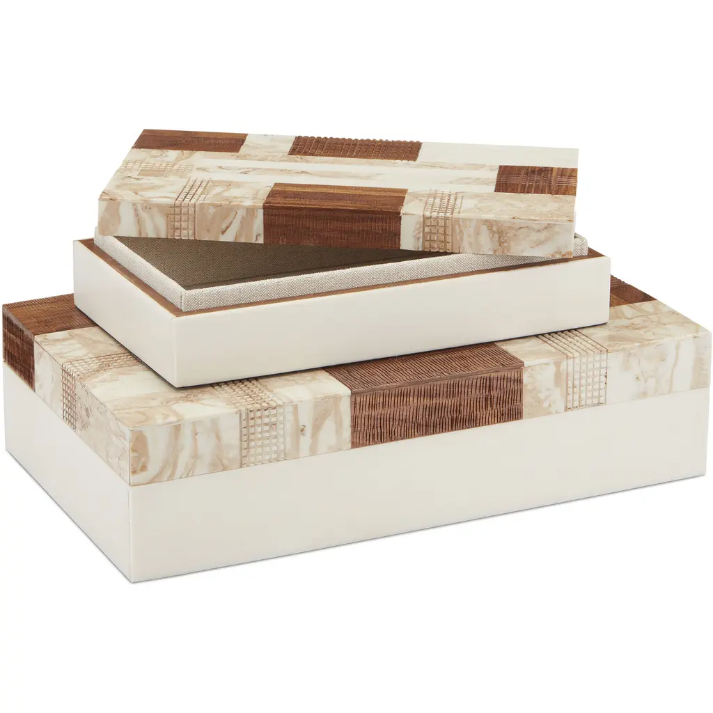 1940s 12 Inch Beige/brown/ivory/natural Boxes, Set Of 2