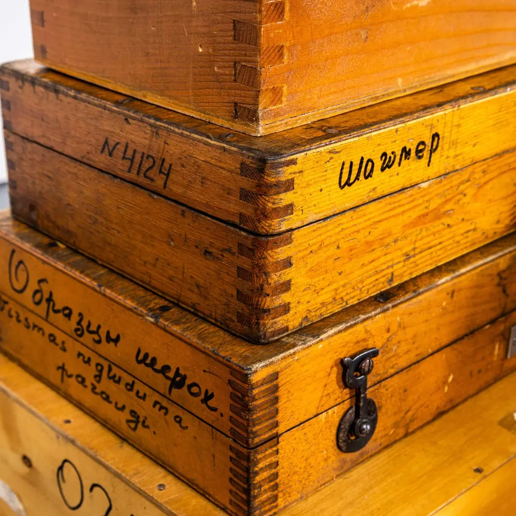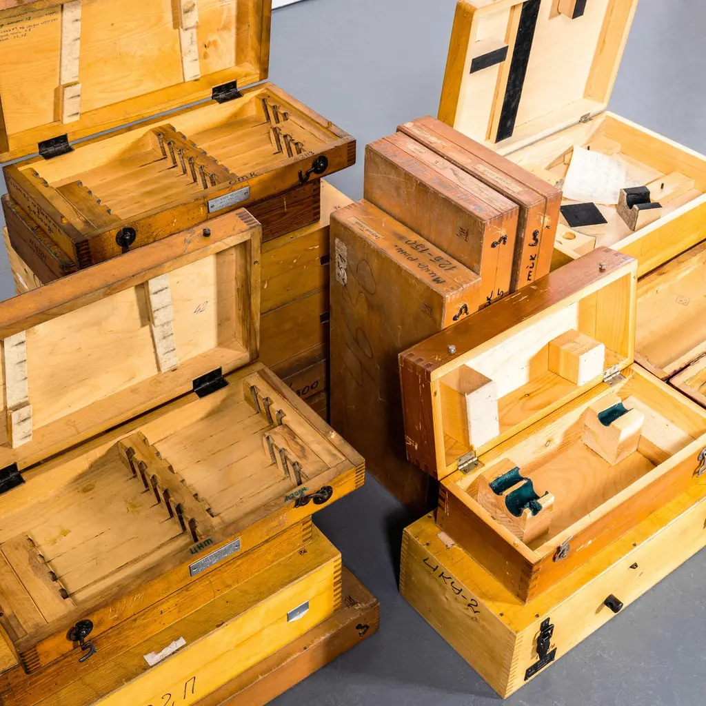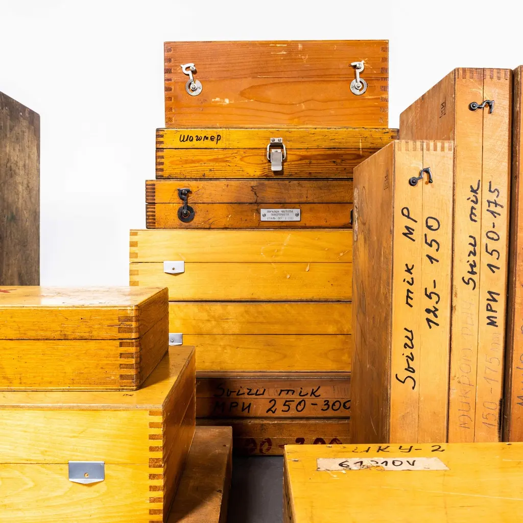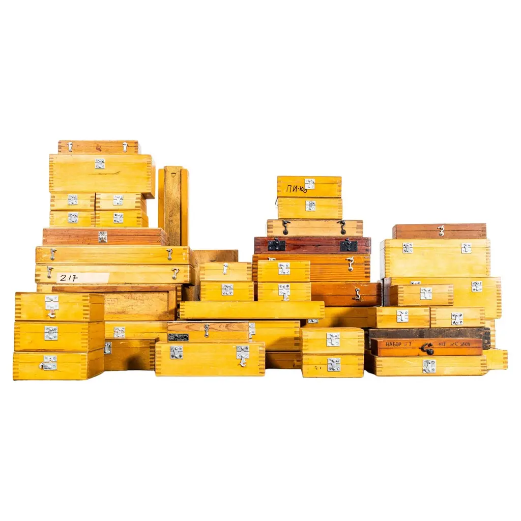 1960's Medium Sized Industrial Scientific Equipment Boxes - Single Box - Good Quantity Available. We bought a good volume of these great industrial boxes and are selling them individually. Useful for all sorts of storage, display or stacked up as side tables. They were sourced from a Latvian factory where they were used to store and protect precision measuring equipment and tools. Most of them have interesting fitted interiors and occasionally with original equipment. The boxes are sold individually, we are unable to remove internal dividers and are selling as decorative boxes. We have a large number and unfortunately we cannot match orders to the listing image, our team will select a representative box at random from our stock. Boxes all close with catches of various styles. Listing is for one box and the dimensions below are for the average size.Workshop Report:Our workshop team inspect every product and carry out any needed repairs to ensure that everything leaves us serviced and maintained ready for many more years of life. All of our vintage products show the rich beauty and history of their life with the knocks and bumps of many years of use and we try to minimise restoration to keep every piece as original as possible.Date:1960'sMaker:Industrial Production – CzechDimensions:30cm(w) x 40cm(l) x 12cm(h)