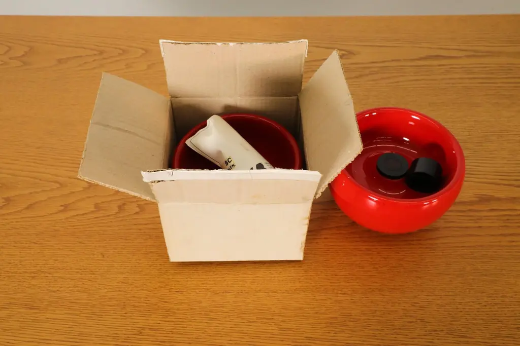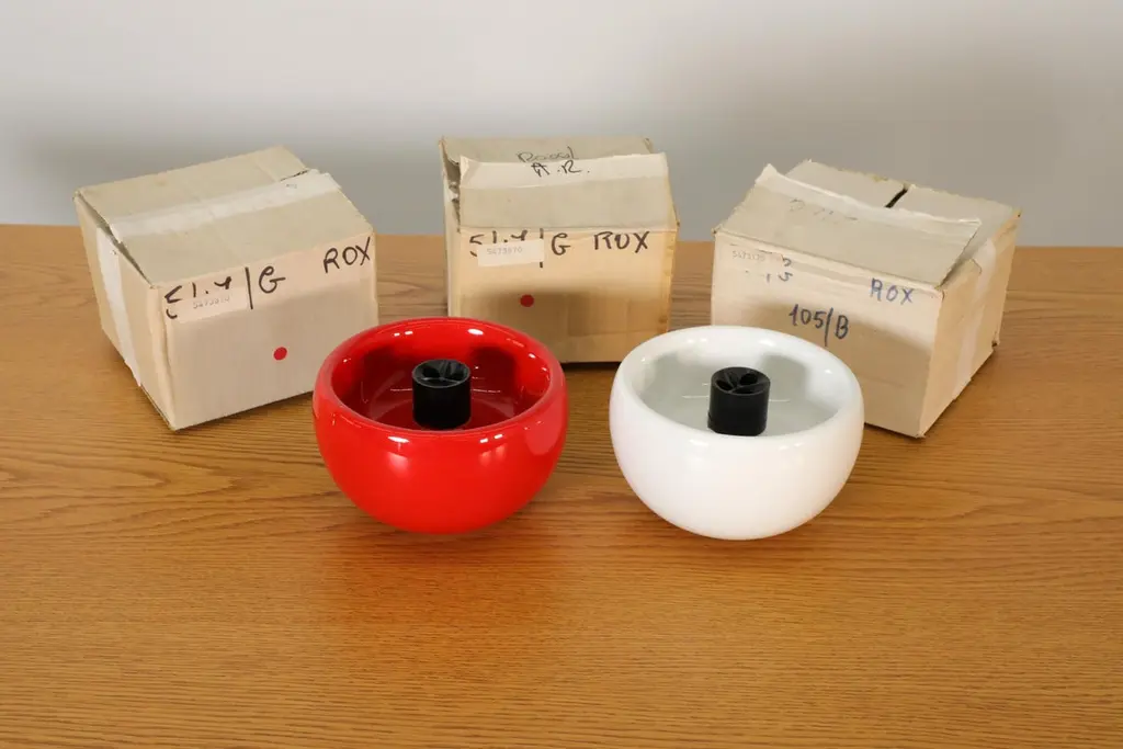1970's Rox Sicart Red And White Round Ceramic Ashtrays, New In Box