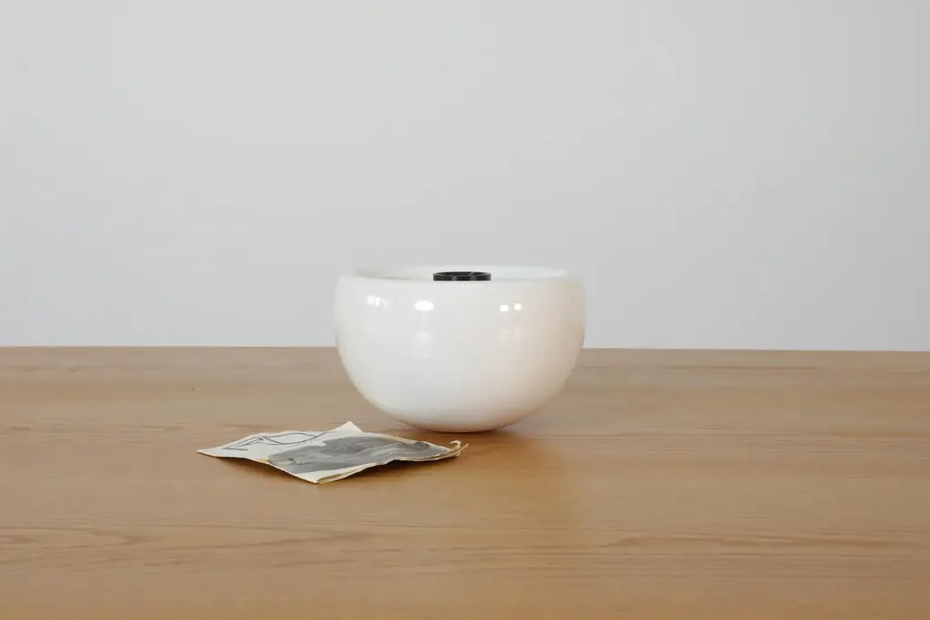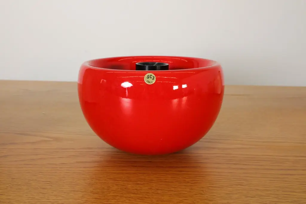 Rare 1970's new in box ceramic ashtrays made by Sicart, Italy. Ashtrays come in red and white, bowl design with a patented magnetic system, which has three cigarette holders. 10 available in Red, 4 Available in White. Sold individually.