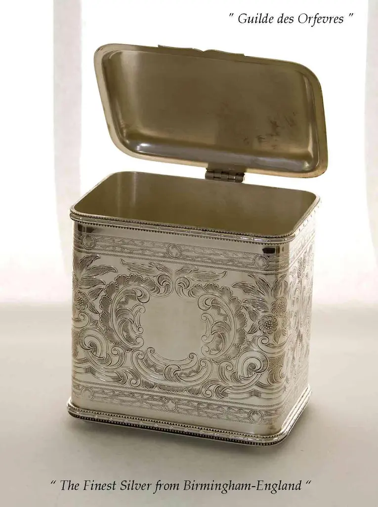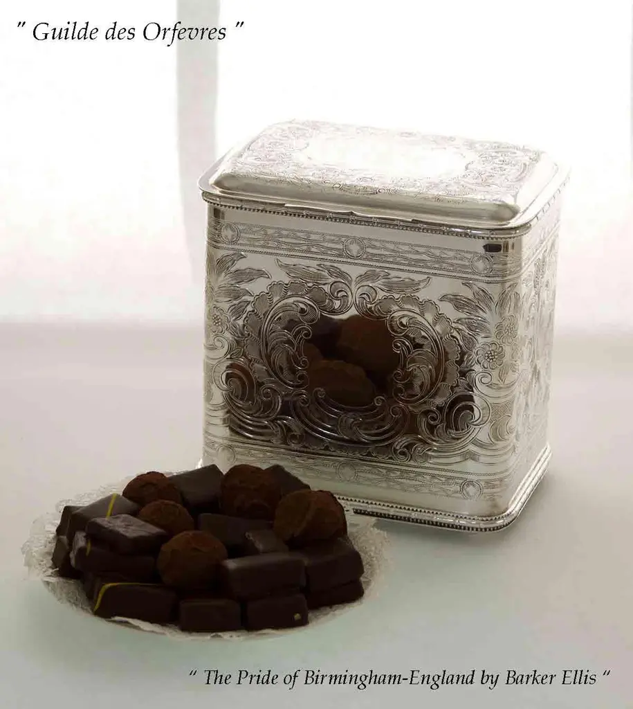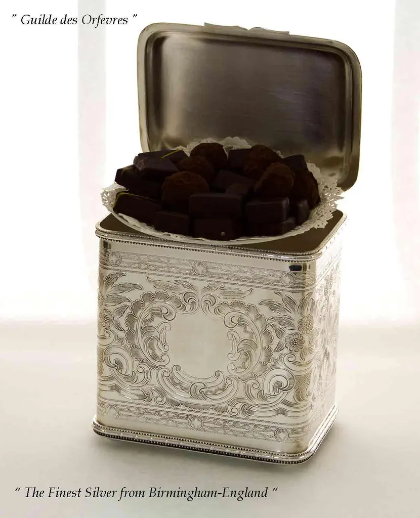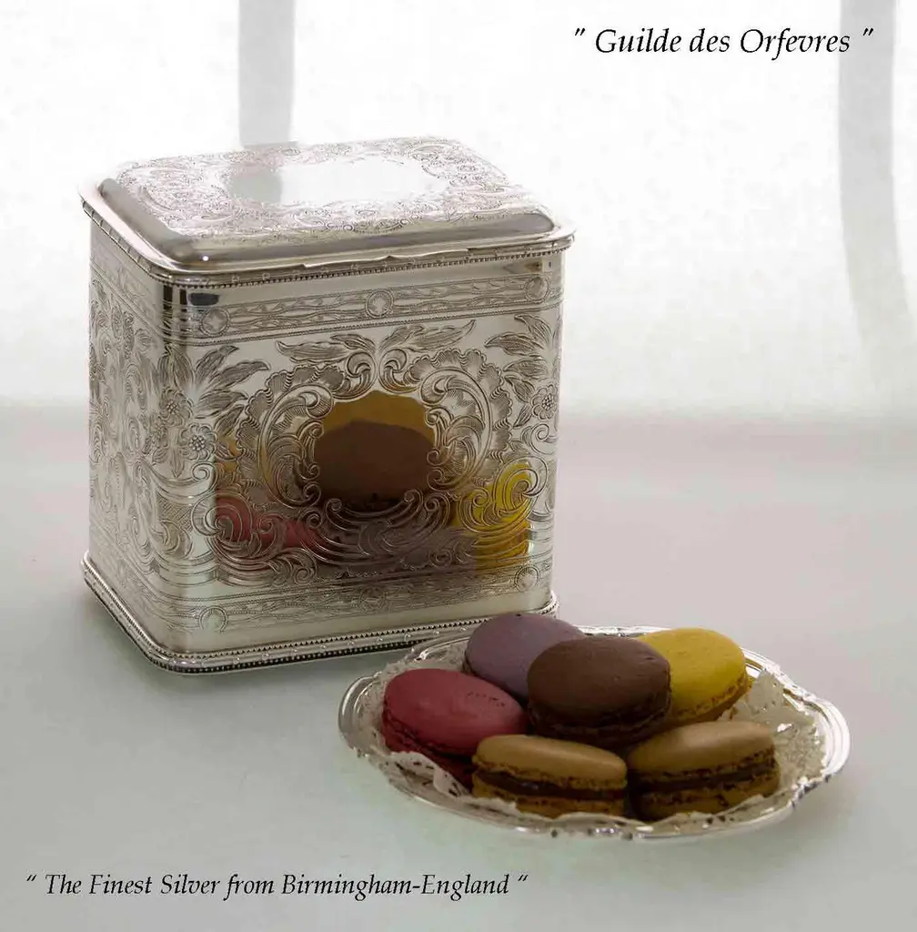 Ref. # IF 3505 Description : Silver Oblong Biscuit Box Embossed Pattern : Embossed - Size : H. 7 in. Electro Plated on Cooper, a quality silver plated on cooper Made in England, by Barker Ellis for I. Freeman & Sons in 1970-80’s. Marked : I. Freeman & Sons Retail Price : $ 640.00 Wholesale : $ 320.00 Quantity Available : 12 N.B. Barker Ellis, a prestigious silver company in Birmingham, England, supplier of the finest stores in the U.K. such as : Mappin & Webb, Garrard (Asprey), etc... The Barker Ellis company is now defunct. Silver is Eternal, the Silver Glow & Patina is agreeable to the Eye. Quality Silver & Sterling Silver are Heirloom, will be Enjoyed & Treasured from Generation to Generation. “. ABOUT US We at Guilde des Orfèvres, Ltd. had a Showroom in 225 Fifth Avenue in New York; we introduced the finest European products to the US market. We supplied the Finest Stores Nationwide, such as: Tiffany, Bergdorf Goodman, Scully & Scully, Bernardaud, in New York; Betteridge Jewelers, in Greenwich; Connecticut; Schreve, Crump & Low, in Boston; Mary Mahoney, In Palm Beach, Florida; Geary’s, in Beverly Hills and Gump’s, in San Francisco, California. The Story Behind These Magnificent & Exceptional Sheffield Plate Items is Fascinating : Purchased directly from the Silver Manufactures in London, Sheffield & Birmingham-England in 1970's. They are in the original factory packaging, were at a storage in Greenwich, CT for almost forty (40) years. They surfaced to the market when most of the manufacturers are now defunct!? “ They Are Not Available Anywhere Else “ Condition : New - Original Factory Packing from the 1970's.