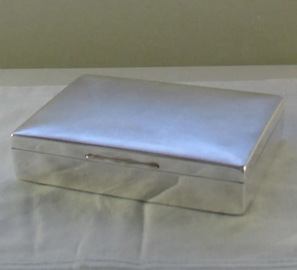 1970’s Vintage/new Silver Wood Lined Cigarette Box, Plain
