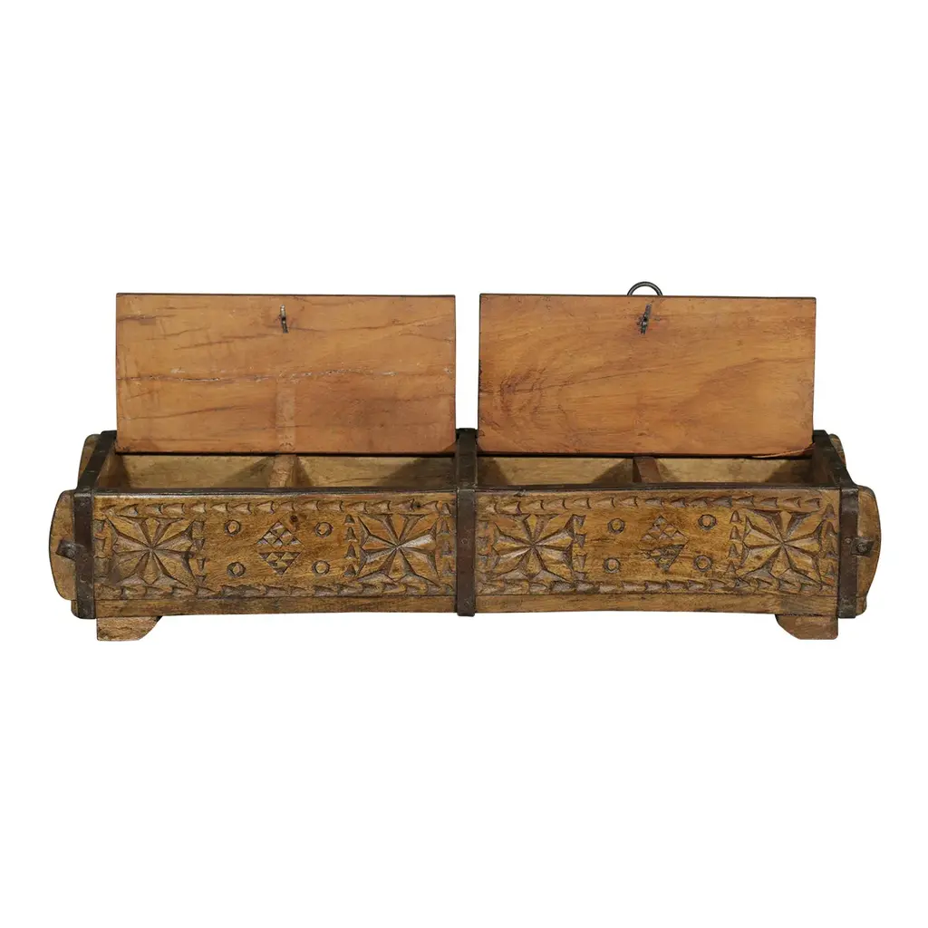 imensions: 23" W x 7" D x 4" H This piece handcrafted by artisans using basic hand tools. Due to the nature of this creative process, you can expect to find variations in their finish and color. I The listed dimensions are measured from one extremity to the other, height wise and width wise. Please contact us for specific dimensions. Construction: 100% Solid Wood Please note that color of products shown may vary slightly from their actual color due to monitor display settings or photography studio lighting.