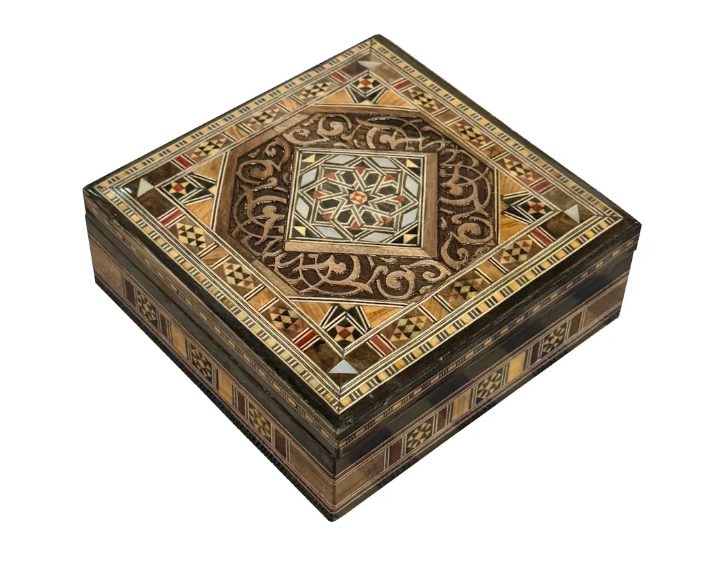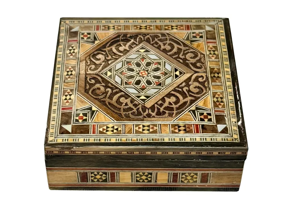 1990s Vintage Mosaic Inlaid Wood Box