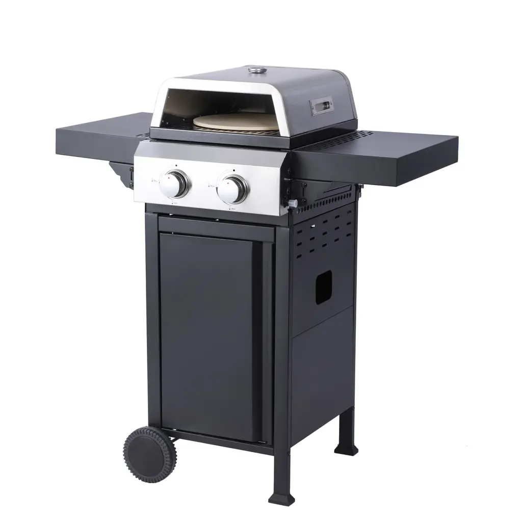 2-Burner Propane Gas Bbq Grill, Pizza Box, 24600btu Output With Wire Enamel Cooking Grids For Outdoor Barbecue - Propane Gas - Black