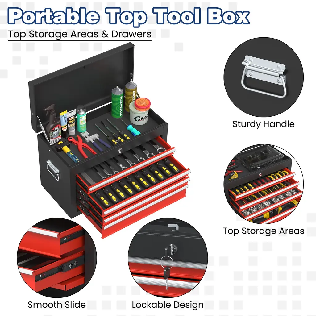 2-In-1 Rolling Tool Box, Large Capacity 6-Drawer Tool Box With Key And Wheels - Red/black
