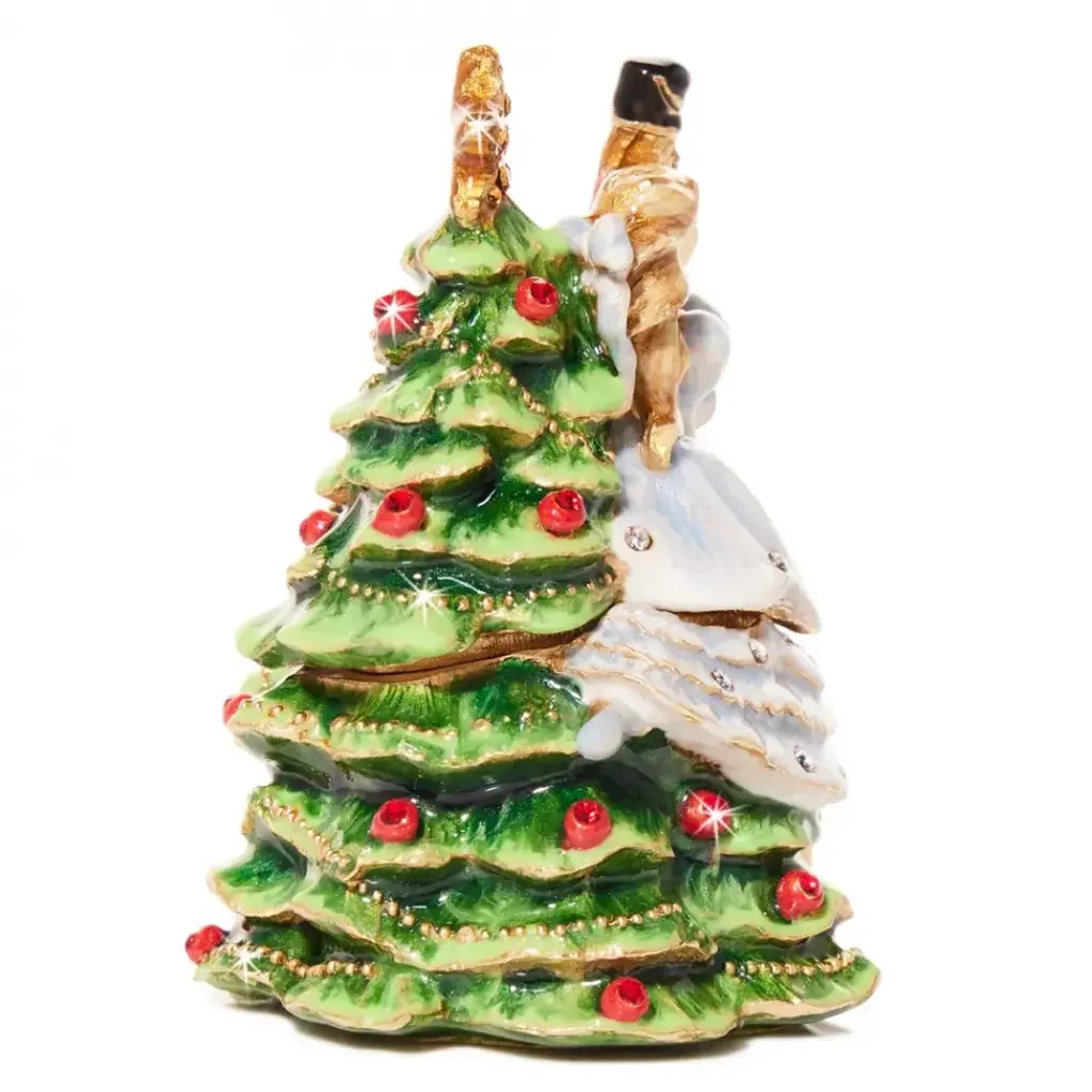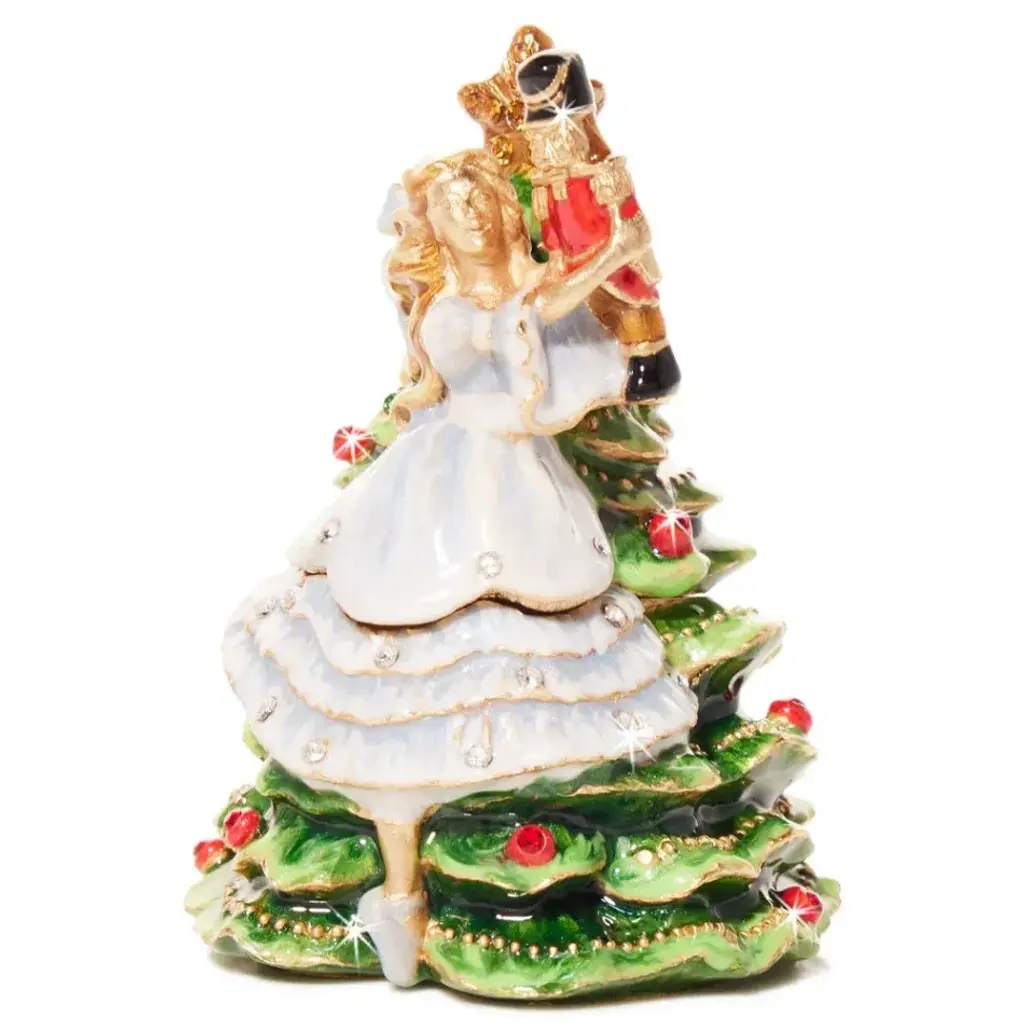 Look who danced onto the stage – Clara from the timeless ballet, Tchaikovsky’s Nutcracker Suite! Introducing our 2024 Nutcracker Suite Mini Box, a stunning piece capturing the classic imagery of Clara holding her beloved Nutcracker, her family's beautifully dressed tree behind her. This annual dated holiday box is cast in metal and plated with 14K gold. Each box is meticulously hand-painted in classic Christmas-hued enamel and adorned with hand-set European crystals, perfect for holding tiny treasures and holiday memories.