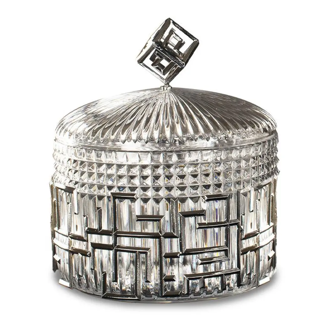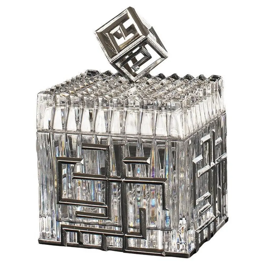 21st Century Clear Crystal Silver Bronze Decorative Box-