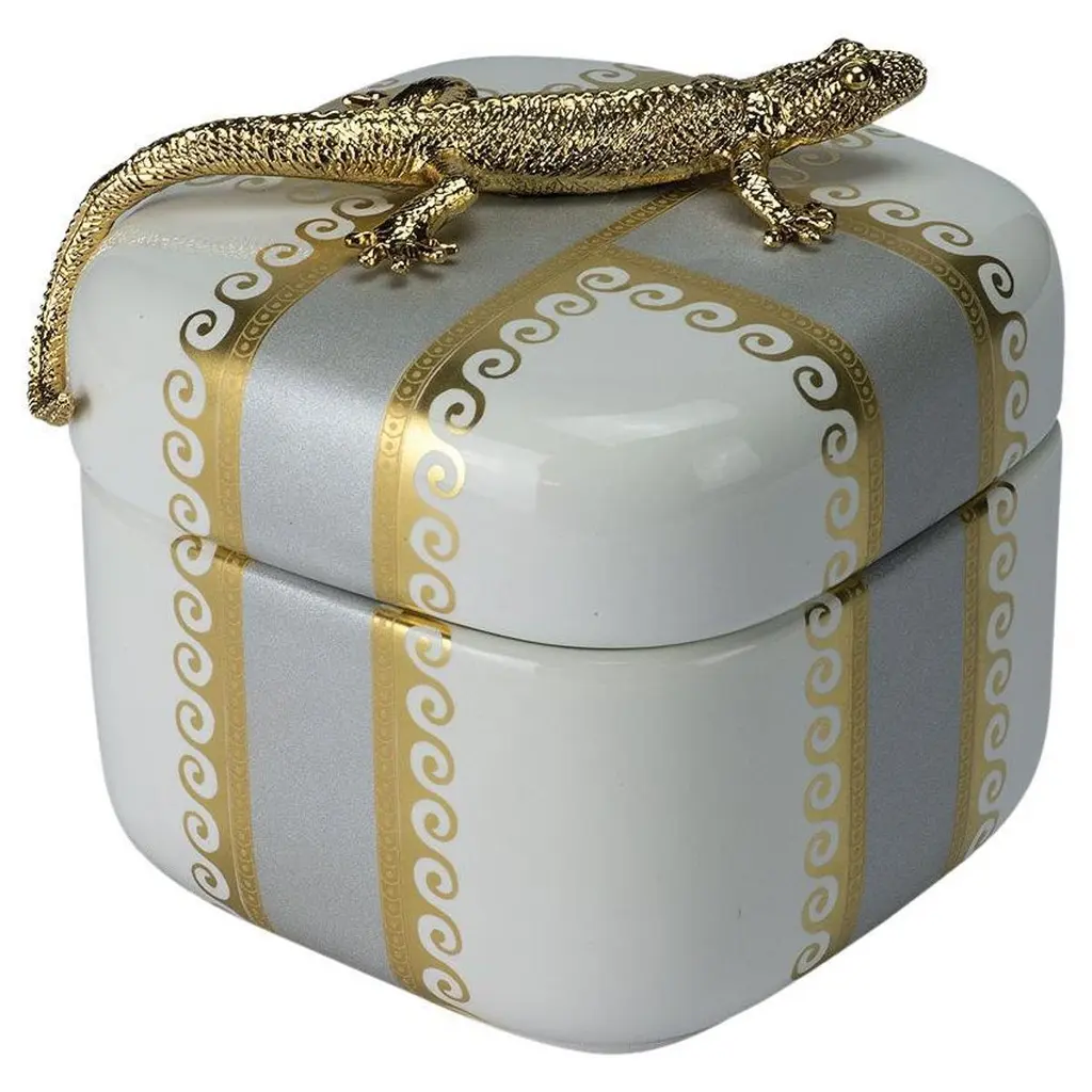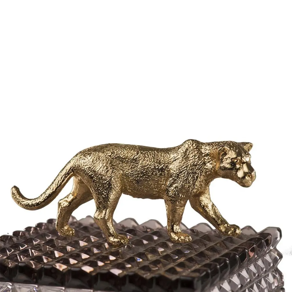 Amethyst crystal box with cut engravings embellished with brass detail made with the artisan lost wax technique with patinated gold finish. Each object is handcrafted and the care for every detail makes each item unique in its kind.The style of this box is a modern reinterpretation of an object from the second half of the 18th century in France. The animal on the box is a Panther realized with the lost wax techinique. Also Oggetti d'Arte will follow with the same passion the request of the most qualified studies of interio architecture from around the world, helping them in achievement of their most ambitious projects.This box, at the customer's request, can be made with different metal finishes and with different crystal colors so that it can be inserted in the best possible way within your furniture.