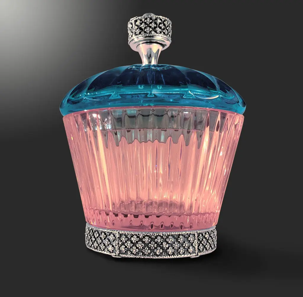 Pink and light blue crystal box with cut engravings embellished with brass detail made with the artisan lost wax technique with patinated silver finish. Each object is handcrafted and the care for every detail makes each item unique in its kind.The style of this box is a modern reinterpretation of an object from the second half of the 18th century in France.Also Oggetti d'Arte will follow with the same passion the request of the most qualified studies of interior architecture from around the world, helping them in achievement of their most ambitious projects.This box, at the customer's request, can be made with different metal finishes and with different crystal colors so that it can be inserted in the best possible way within your furniture.