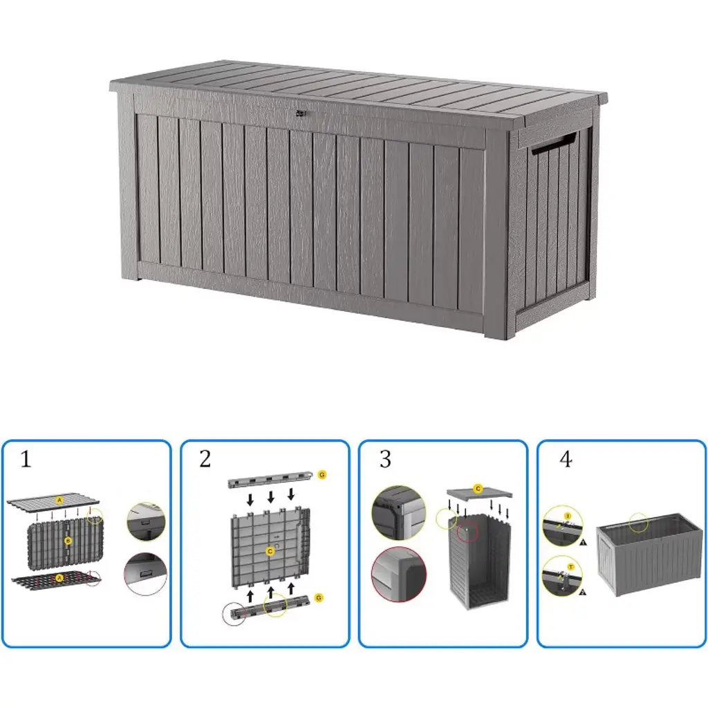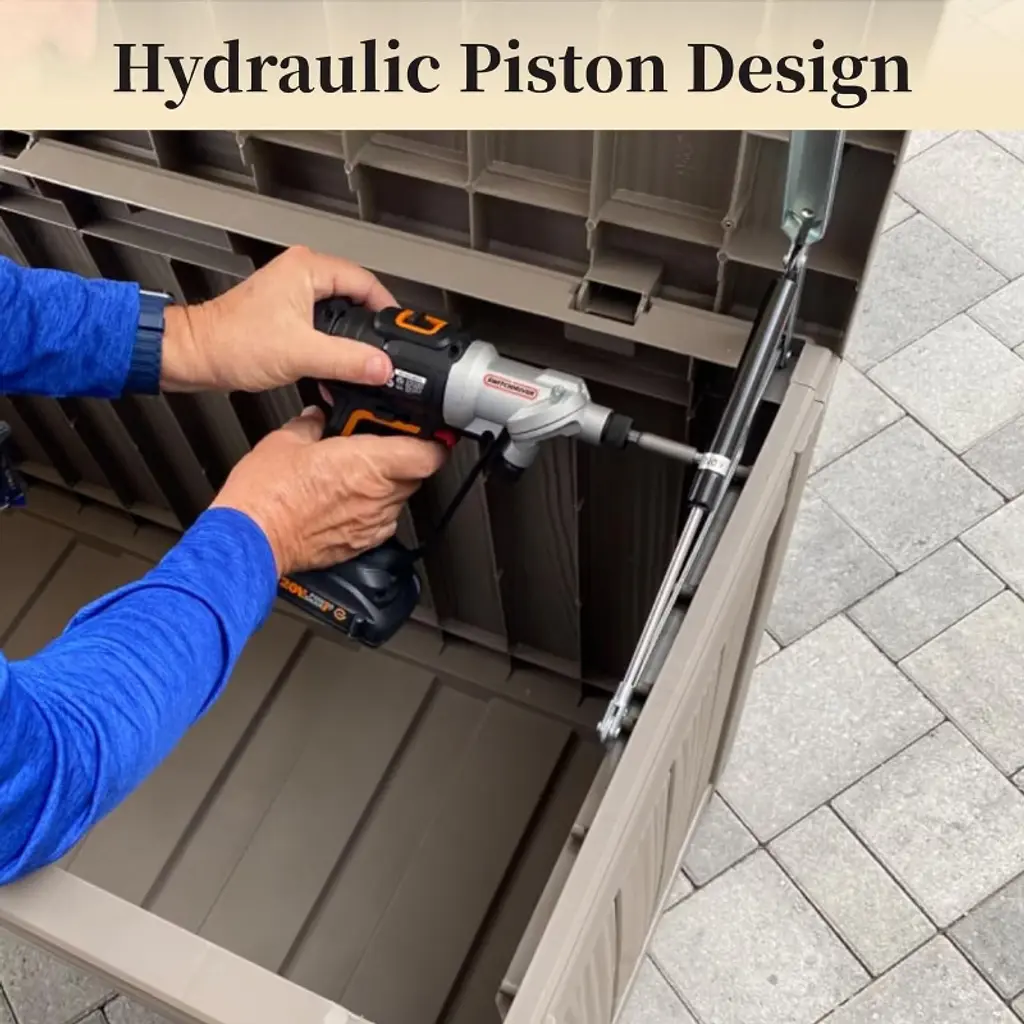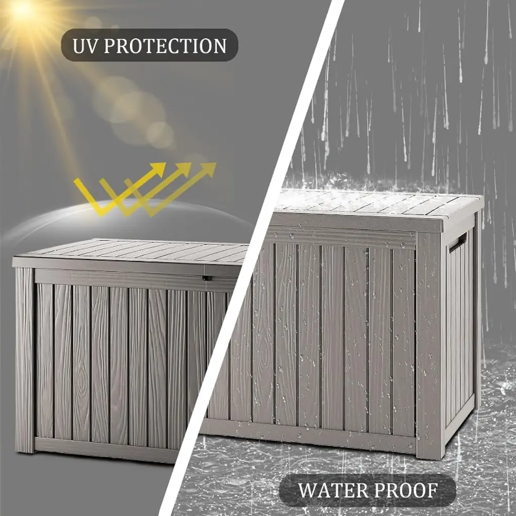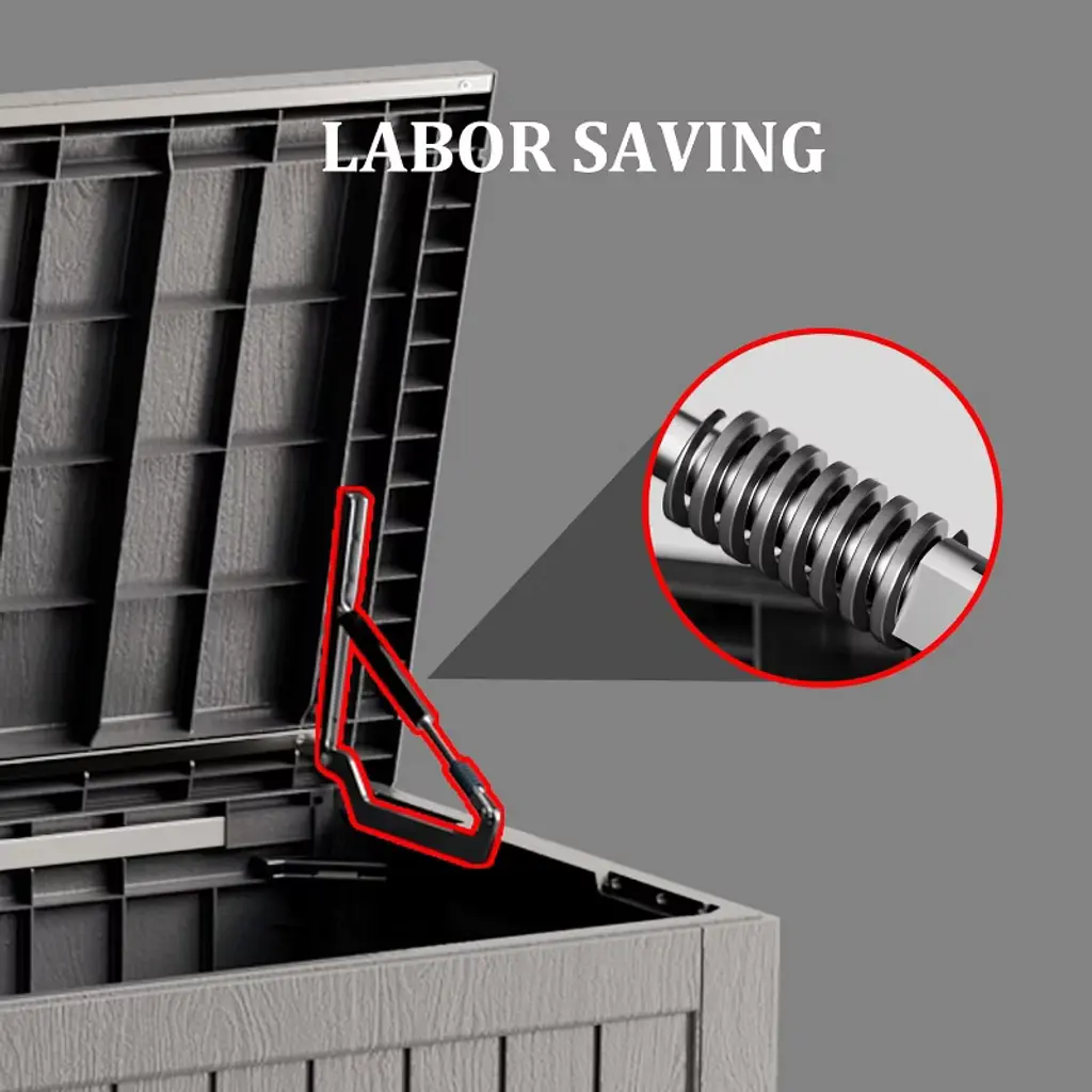 This deck container has a capacity of 230 gallons (approximately 871 liters) and is a super large capacity solution for outdoor storage. It can store large gardening tools, pool equipment, camping gear, outdoor furniture cushions, and more. Its design balances practicality and space utilization, making it suitable for scenarios such as courtyards, terraces, or decks.