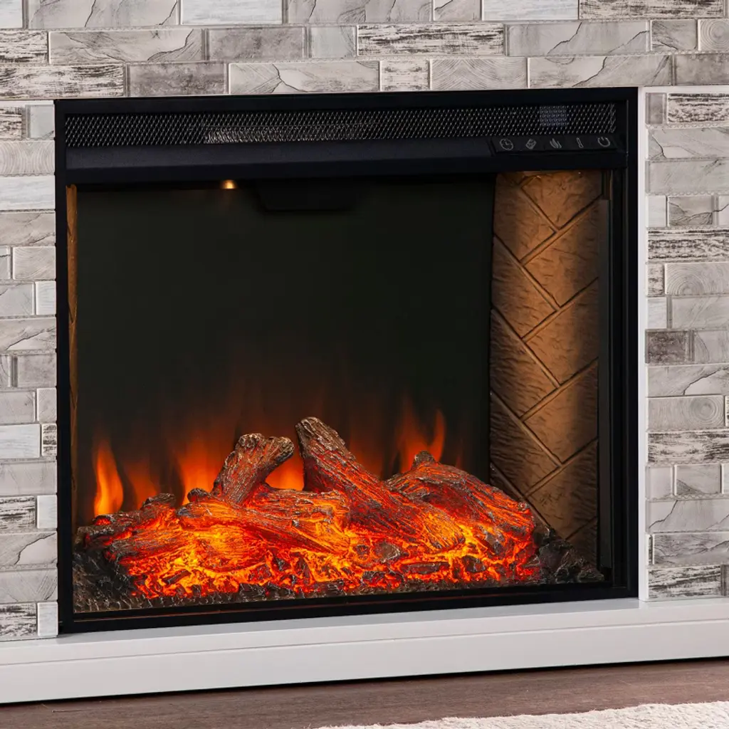 Sold as a set of multiple boxes. Transform your living space with the sleek 23-inch Criss Cross Electric Firebox. Its elegant black finish effortlessly complements any decor, adding a touch of modern sophistication to your home. Crafted with a blend of materials, including metal, tempered glass, resin, and plastic, this firebox achieves a perfect balance between durability and aesthetic appeal. The included remote control provides ultimate convenience, allowing you to adjust the settings from the comfort of your couch. Whether creating a warm, inviting ambiance for a family gathering or setting the mood for a quiet evening alone, this firebox serves your needs with style. Its innovative design offers both visual charm and functionality. The criss-cross pattern exudes contemporary style, while the realistic flame effect adds a cozy feel to any room. Enhance your space and enjoy the perfect centerpiece for your living area with this sophisticated electric firebox.