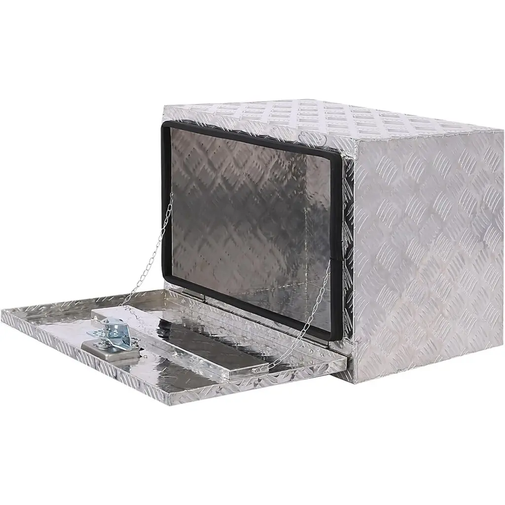 24 Inch Heavy Duty Aluminum Underbody Tool Box, Waterproof Rectangular Truck Storage Organizer Chest With Lock And Keys - Silver