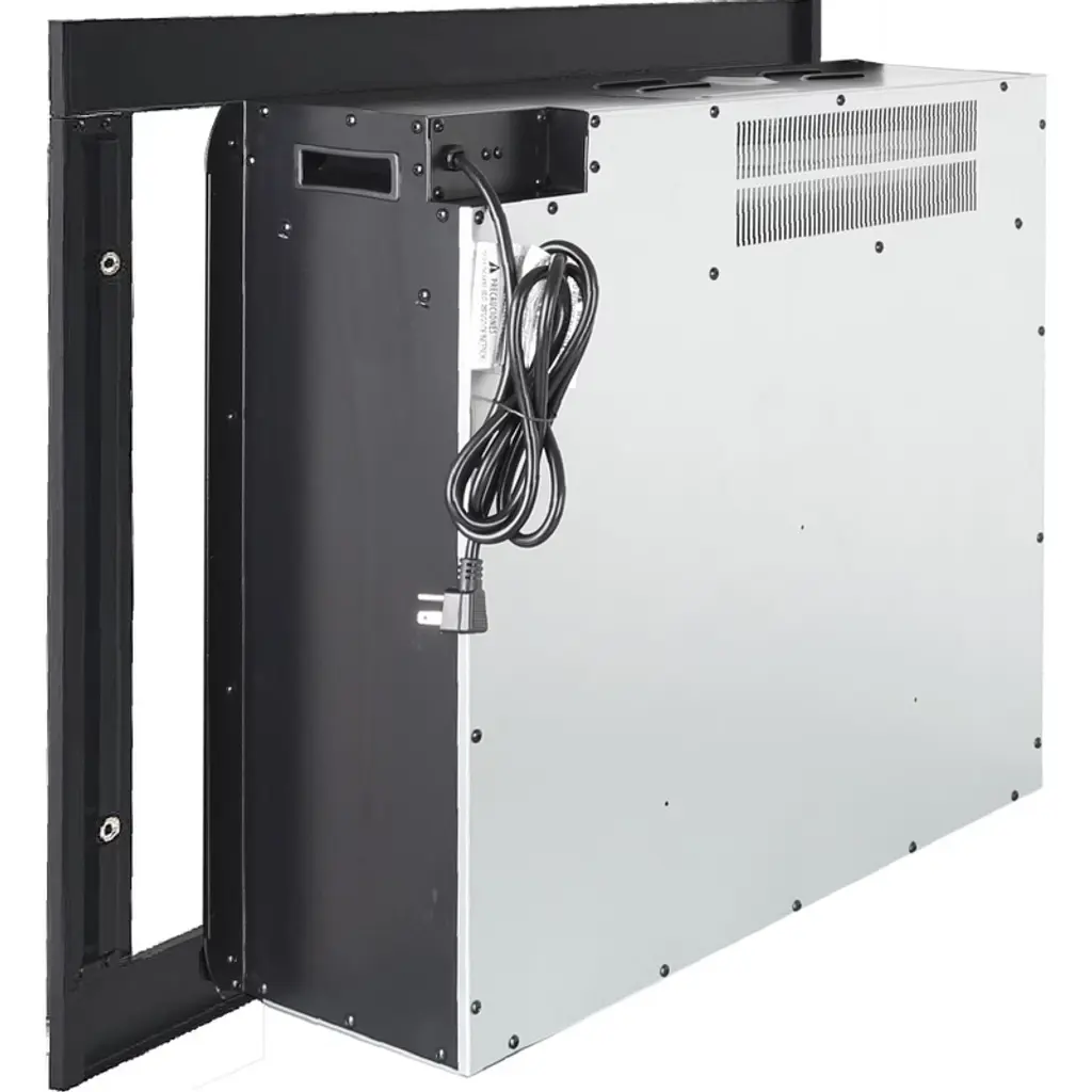 28-inch infrared electric fireplace with removable trim kit, touch panel controls, smokeless firebox, and crackling sound. Provides realistic ambiance and efficient heating.