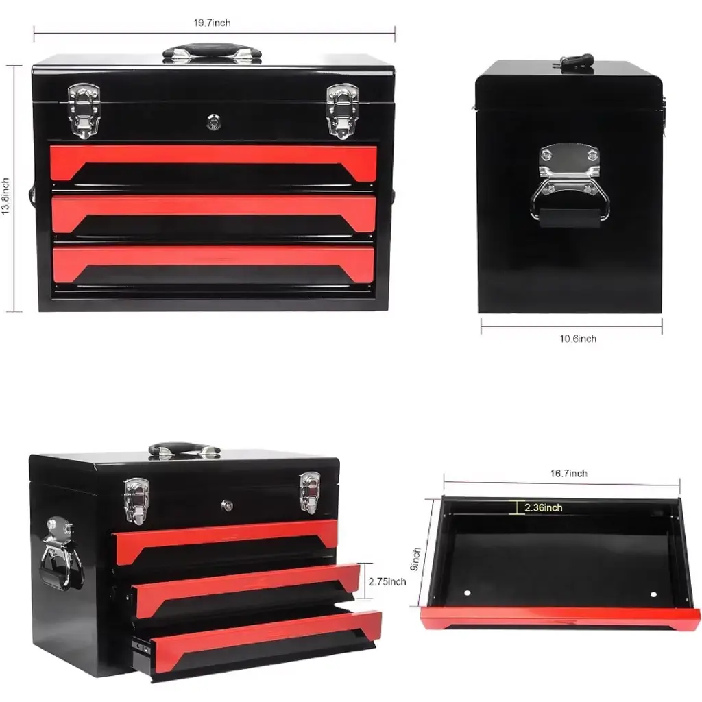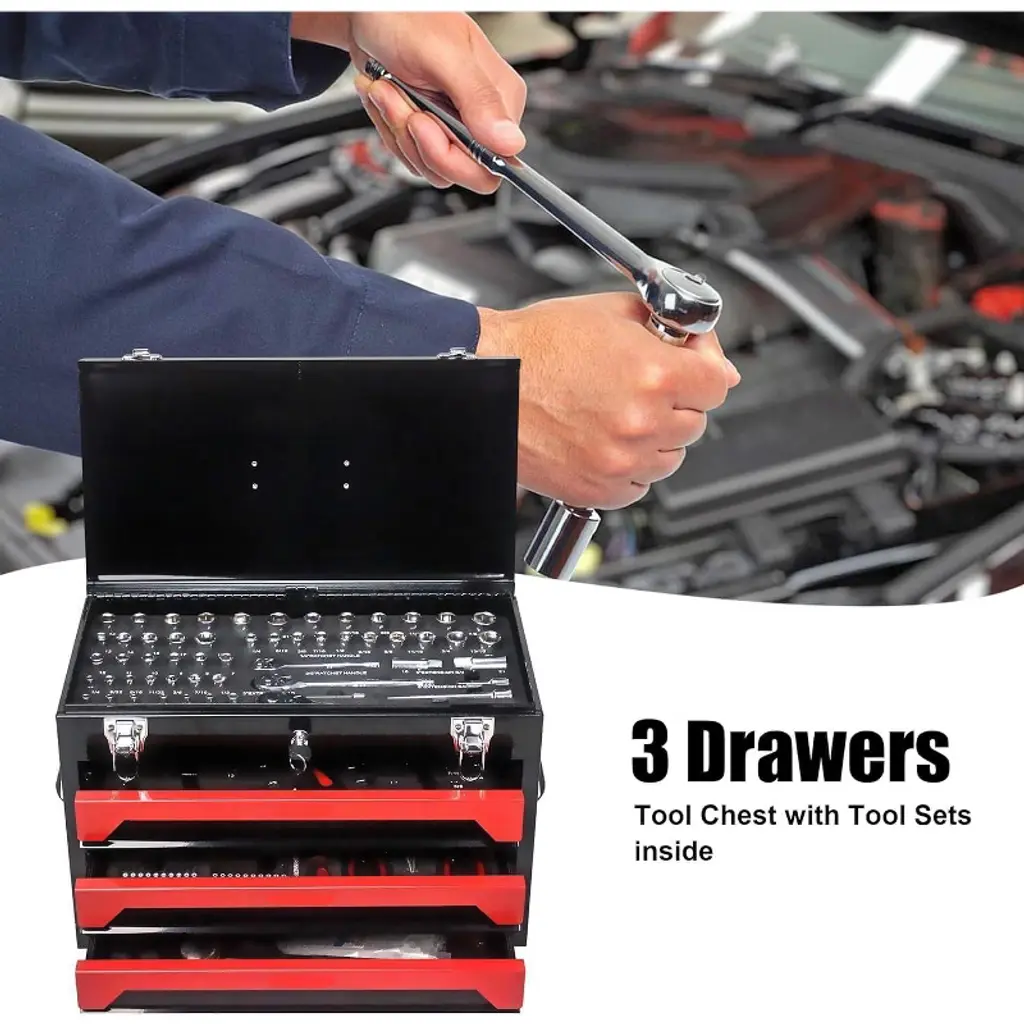 3 Drawers Tool Box With Tool Set, Tool Chest With 439-piece Tool Set, Tool Box With 3 Drawers, Tool Chest Organizer For Garage, Black + Red