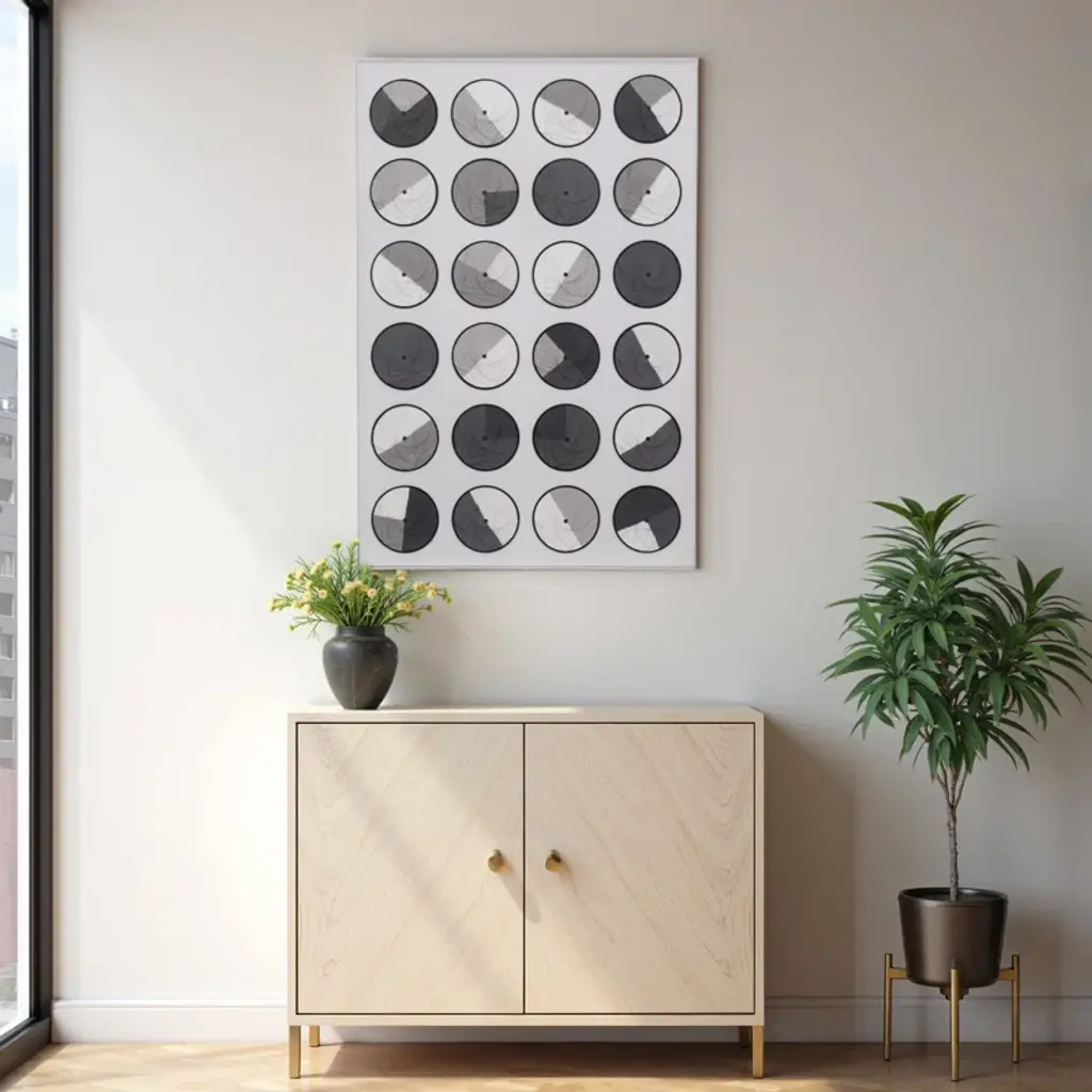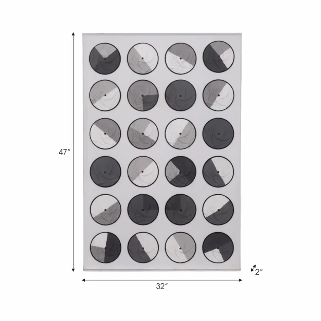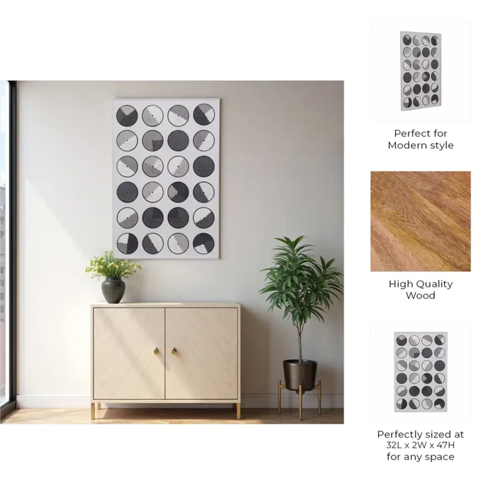 Make a bold impact with the Geometric Abstract Art with Acrylic Shadow Box, designed to transform your walls with modern dimension and striking shapes. This piece arrives ready to hang, showcasing a bold abstract design of circular patterns that bring depth and sophistication to any space. With layered details, it offers the tactile richness of texture wall art, standing out well beyond a simple photo print. Perfectly scaled for the living room, entryway, or office, it works beautifully as part of a curated gallery wall or as a dramatic statement piece on its own. Its versatile look helps you easily add personality and style to both modern and transitional interiors, while pairing seamlessly with complementary wall pictures for a finished display. At 32"L x 47"H, it is sized for balance and requires only light dusting for easy cleaning. Add this piece to your home today and enjoy lasting style.