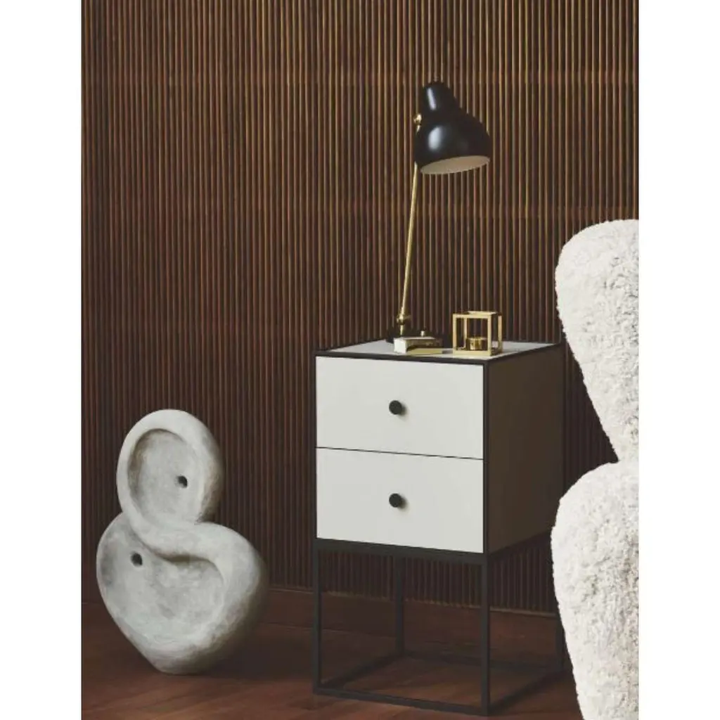 35 smoked oak frame box with 2 drawer by LassenDimensions: W 35 x D 35 x H 35 cm Materials: Finér, Melamin, Melamin, Melamine, metal, veneer, oakAlso available in different colors and dimensions.Weight: 10.50, 10.50, 11.50, 11.50 KgFrame Sideboard is a flexible storage solution consisting of a square module in a cubistic frame with a cubistic black metal base. The simple storage system is inspired by the Kubus candleholder by Mogens Lassen, based on strict mathematical formulas and designed with the greatest precision. Whether standing alone or as a combination of modules, Frame Sideboard is a beautiful and functional storage solution. Place Frame Sideboard next to the sofa or bed, or use it as a classic spacious bookcase. The Frame module can also be separated from the cubistic Base for Frame and instead hung on the wall if your home needs a new touch, or to cater for changing storage needs. Frame Sideboard is available in different sizes and with one, two or three drawers, featuring a soft-close system and hidden tracks.The entire Frame collection is manufactured and assembled by hand in Denmark. It is a collection that truly unites functionality, quality and aesthetics.By Lassen is a Danish design brand focused on iconic designs created by Mogens and Flemming Lassen, founded by Lassens’ relatives in 2008. Brothers Mogens (1901-1987) and Flemming (1902-1984) Lassen are known as two of Denmark’s greatest architects and designers. Both were renowned pioneers of Danish functionalism and modernist architecture, honoured with numerous prestigious medals and awards. Headed by Mogens Lassen’s grandson Søren Lassen, By Lassen carries on the brothers’ design philosophy by manufacturing their iconic designs as well as products by other designers that complement the Lassen’s functionalist style. The company’s mission is to continue the tradition of timelessness, functionality and quality, and to introduce the Lassen’s design heritage to new generations.