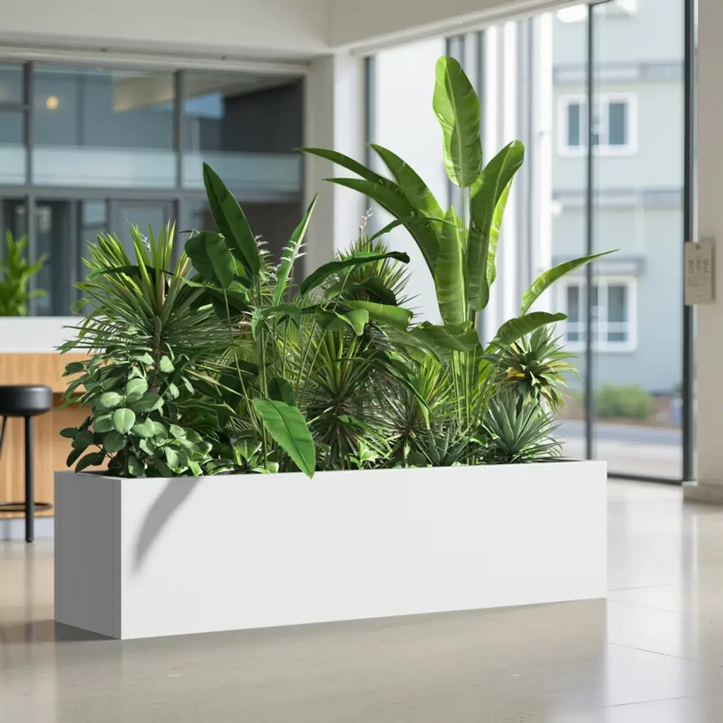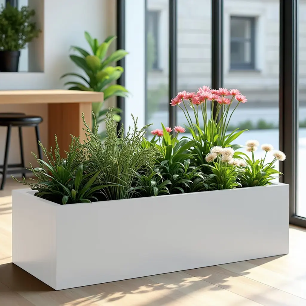 This functional product that combines the functions of a modern privacy screen and a garden planting box climbing frame is made of high-quality galvanized steel and laser cutting technology. Available in black, white, brown and gray with a variety of simple and delicate floral patterns, it can not only be used to grow flowers and plants on the balcony, but also be assembled to divide the indoor and outdoor areas, creating a private space as well as decorating the space. Meanwhile, the metal material is sturdy and durable, suitable for all kinds of weather conditions, windproof, rainproof and corrosion-resistant. Easy to install, can be assembled freely, with pulleys at the bottom for easy movement.