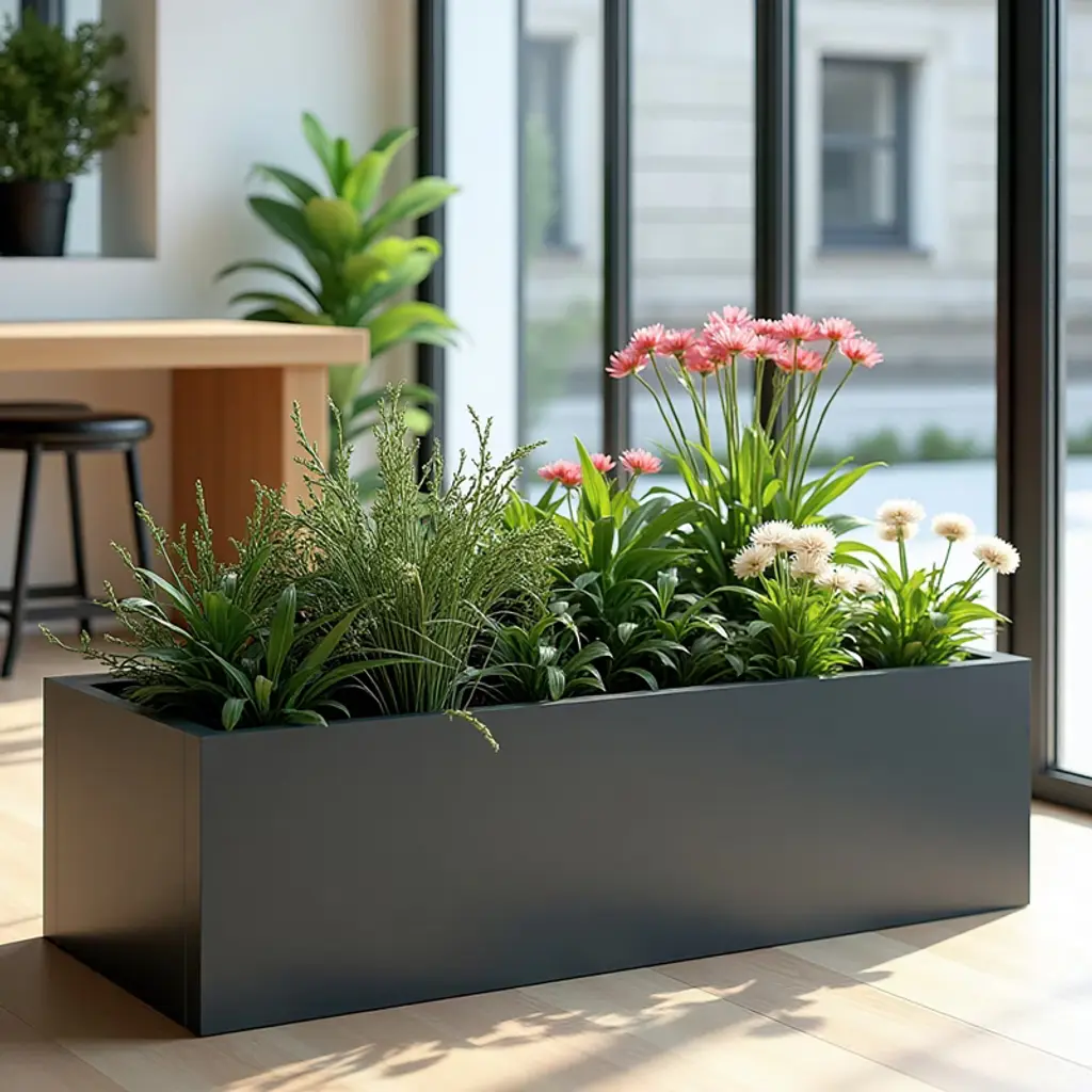 This functional product that combines the functions of a modern privacy screen and a garden planting box climbing frame is made of high-quality galvanized steel and laser cutting technology. Available in black, white, brown and gray with a variety of simple and delicate floral patterns, it can not only be used to grow flowers and plants on the balcony, but also be assembled to divide the indoor and outdoor areas, creating a private space as well as decorating the space. Meanwhile, the metal material is sturdy and durable, suitable for all kinds of weather conditions, windproof, rainproof and corrosion-resistant. Easy to install, can be assembled freely, with pulleys at the bottom for easy movement.