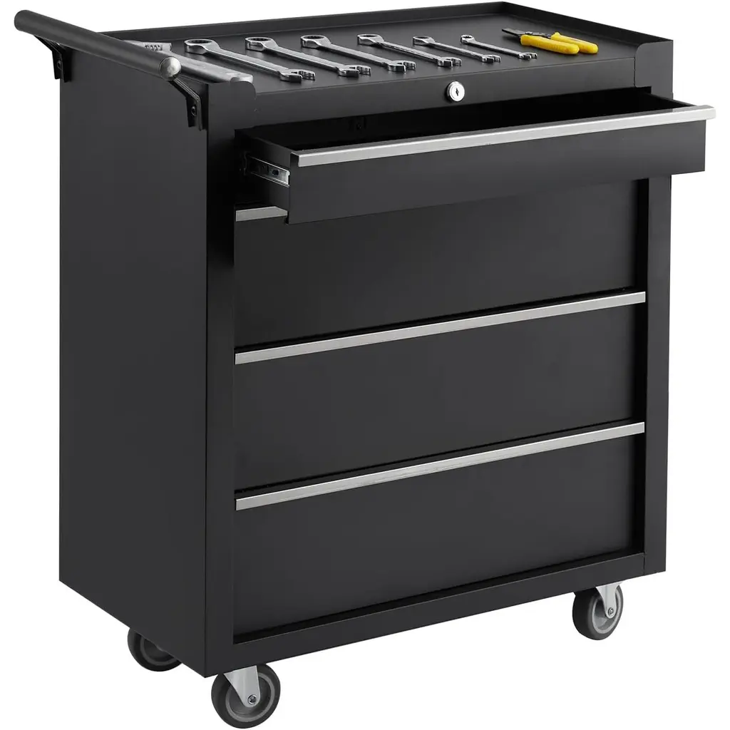 4 Compartment Tool Box, 4 Compartment Chest With Drawers Mobile Tool Cabinet, Key Lock And Drawer Liner - Black