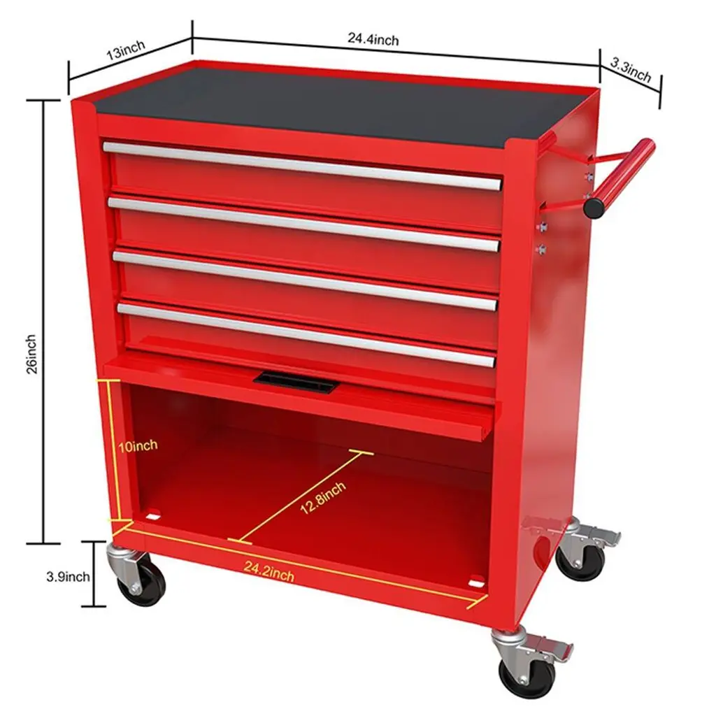 4-Drawer Tool Chest Rolling Tool Cart On Wheels For Mechanics Metal Tool Box Storage Cabinets - Red
