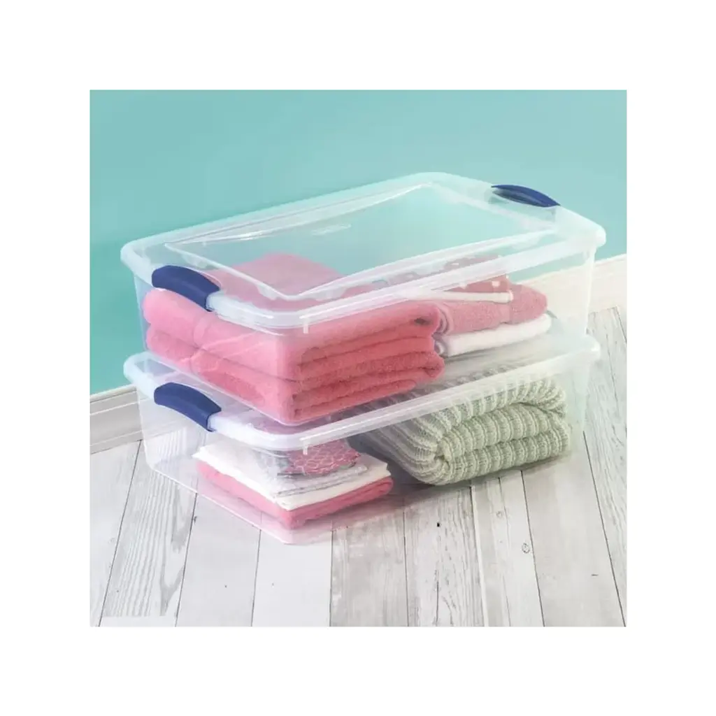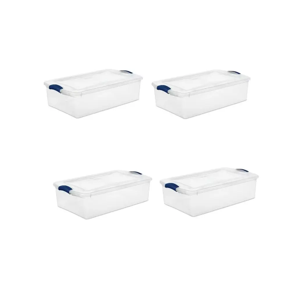 4 Pack 32 Quart Clear Underbed Storage Container With Latch Lid, Blue