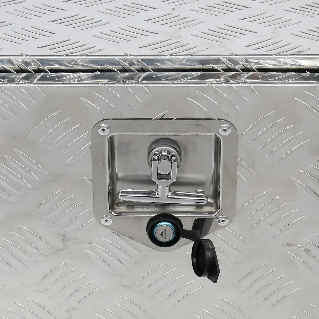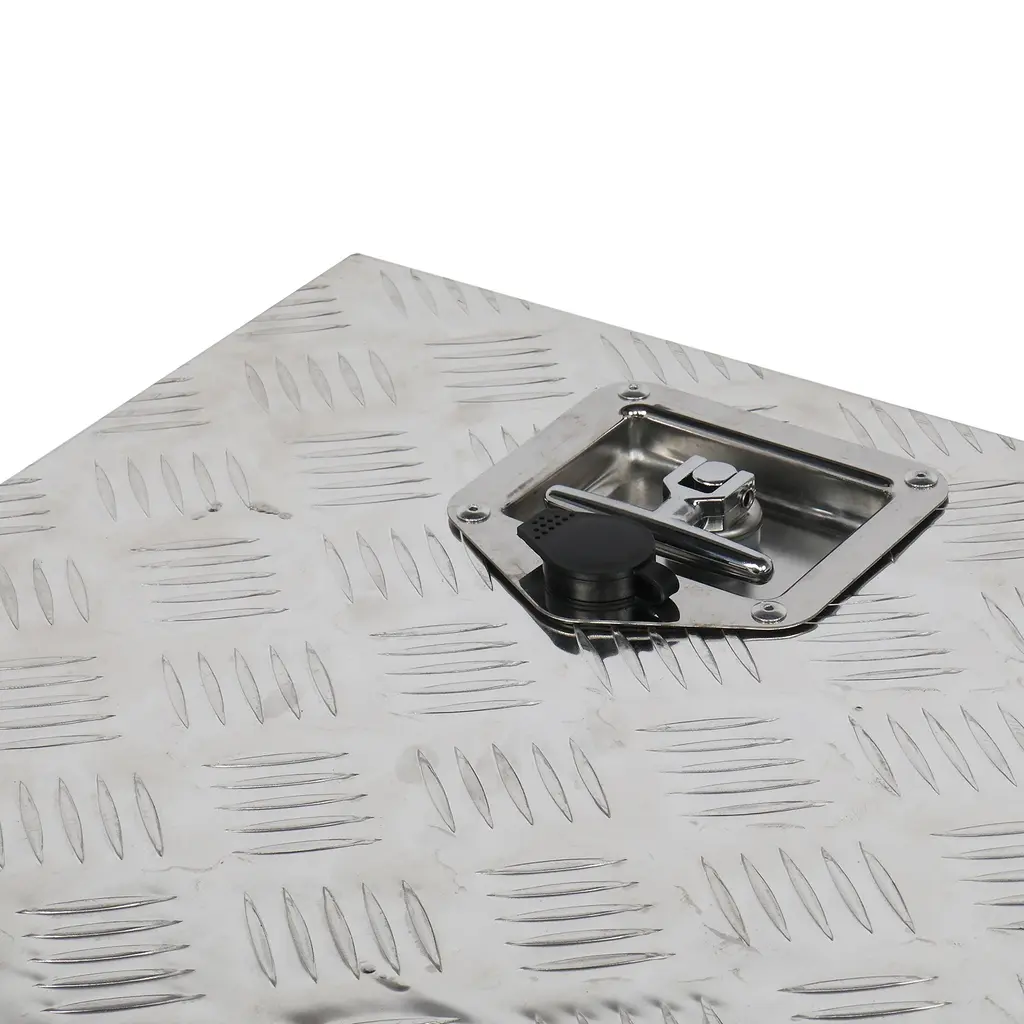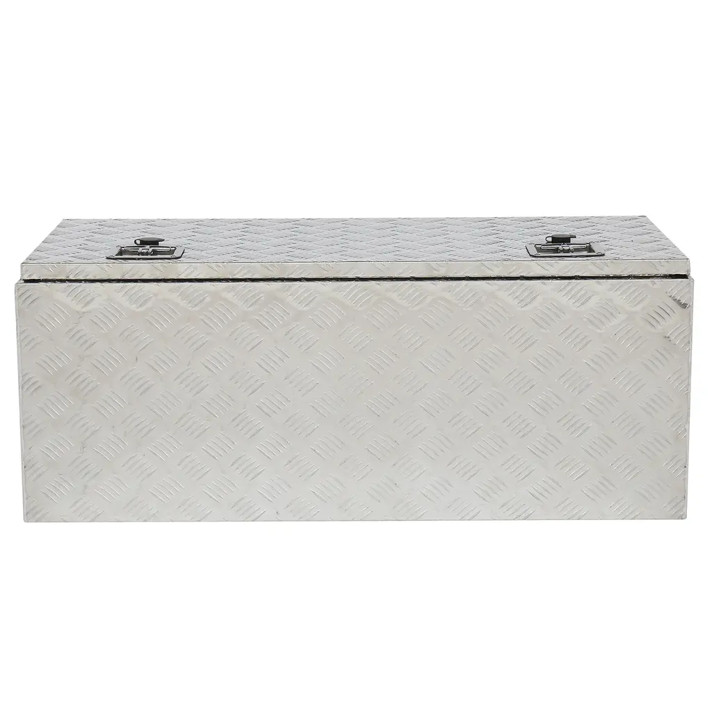 Features: 1. Necessary for families, truck drivers, and outdoor enthusiasts 2. With the durable material and sturdy shell design, it features long-lasting use time 3. Provide all the space and storage for your tools and accessories 4. Brand new and high quality 5. Produced by the sophisticated technology, durable in useSpecifications: 1. Product Dimensions: (42 x 18 x 17)" / (107 x 45 x 43)cm (L x W x H) 2. Tread: 5 Bar Tread 3. Material: Aluminum 4. Weight: 26lb / 12kg 5. Color: Silver 6. Position: UnderbodyPackage Includes: 1 x Aluminum Tool Box 4 x Keys