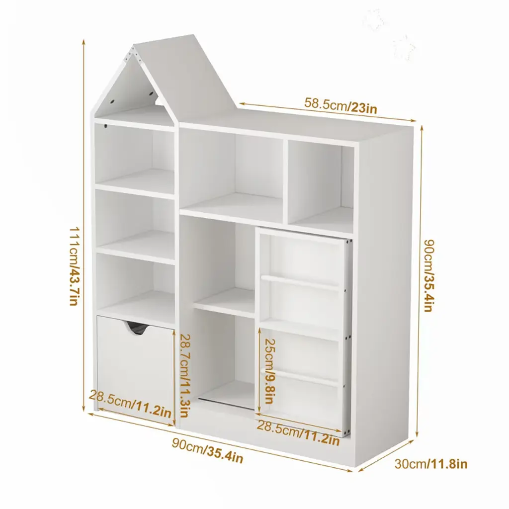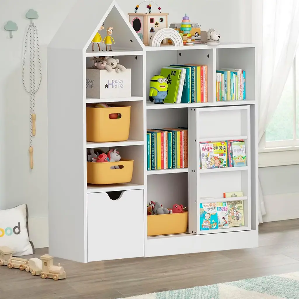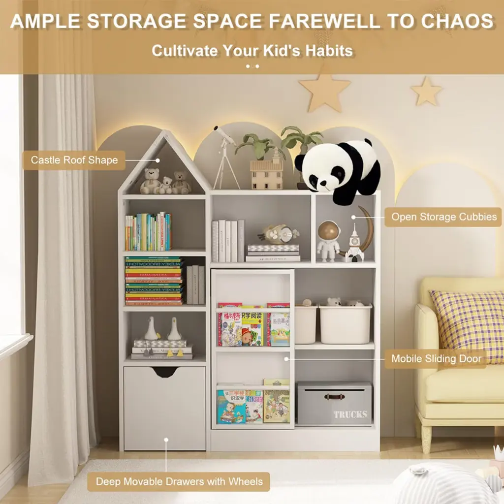 43.7'' Kids Toy Storage Organizer & Bookshelf, Floor Storage Cabinet Toy Chest With Movable Drawers, Bookshelf With Storage Cubbies Toy Box