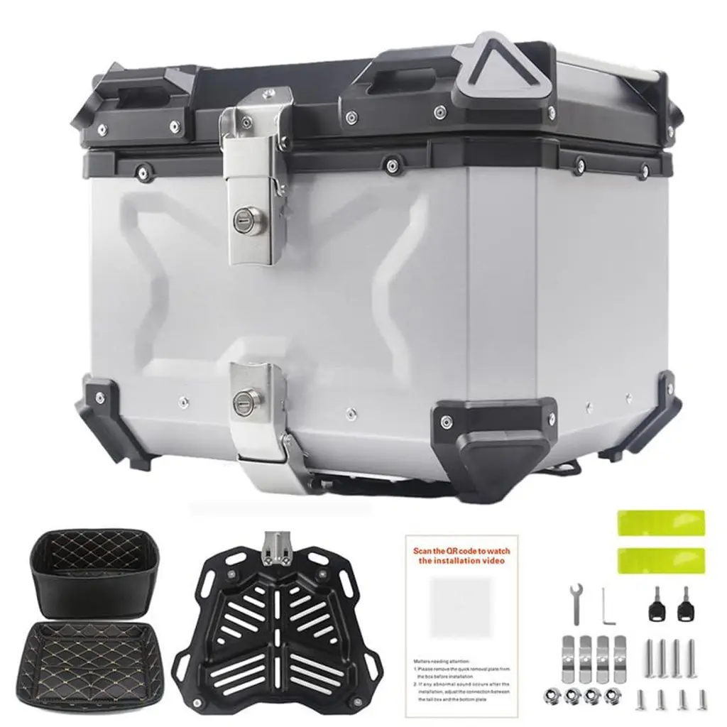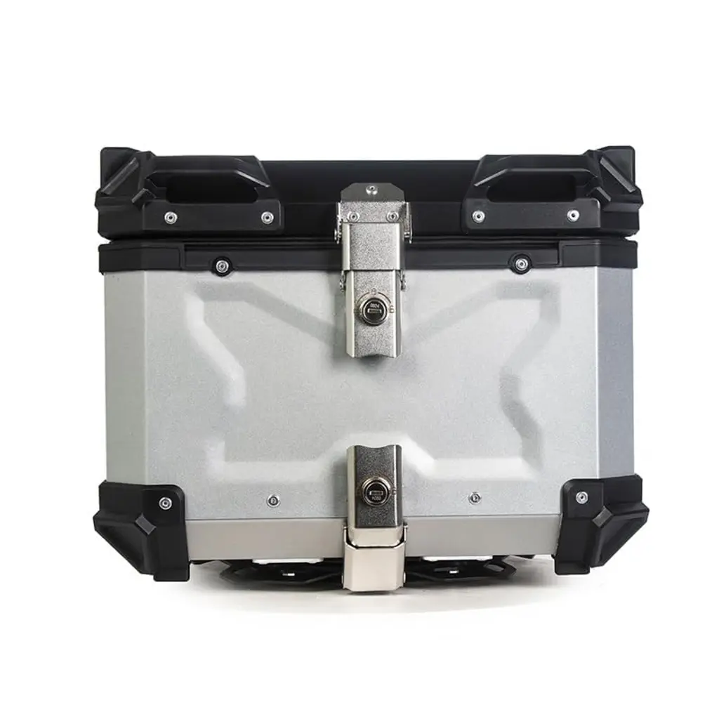 45l Embossed Silver Aluminum Motorcycle Top Box ̈C Lockable Waterproof Storage Case For Helmets & Gear (1-piece, Anti-theft)