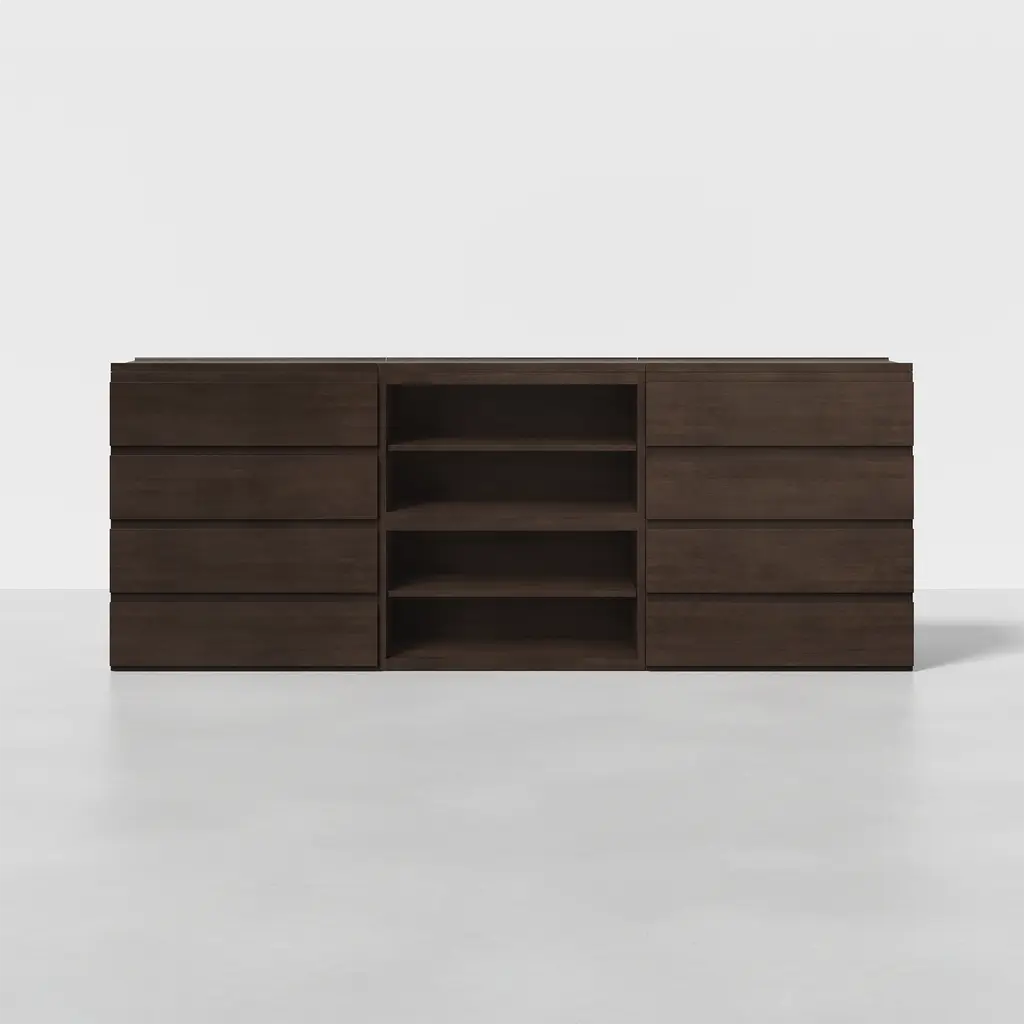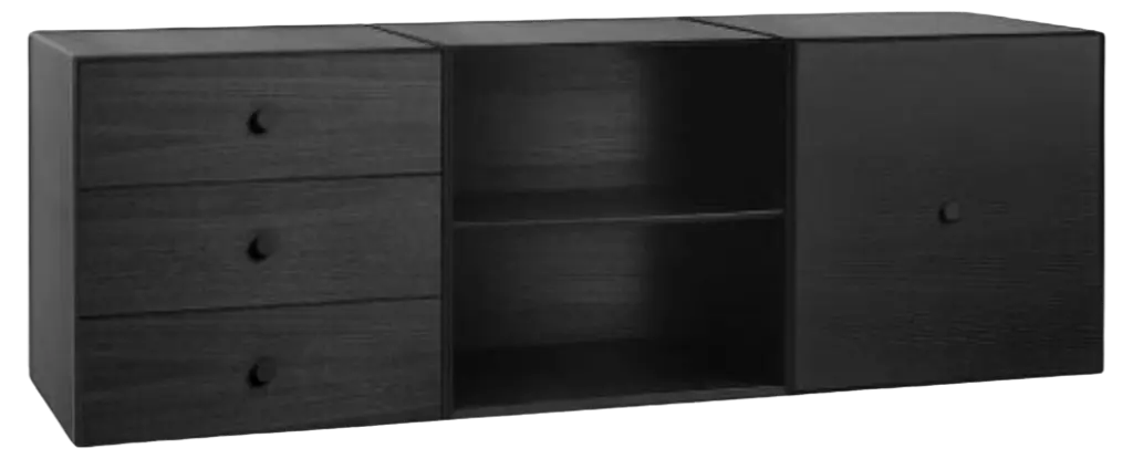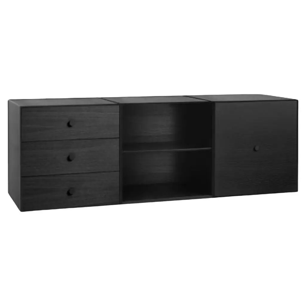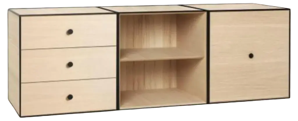 49 Smoked oak frame box trio by Lassen Dimensions: D 147 x W 42 x H 49 cm Materials: finér, melamin, melamine, metal, veneer, oak Also available in different colors and dimensions. Weight: 45 Kg