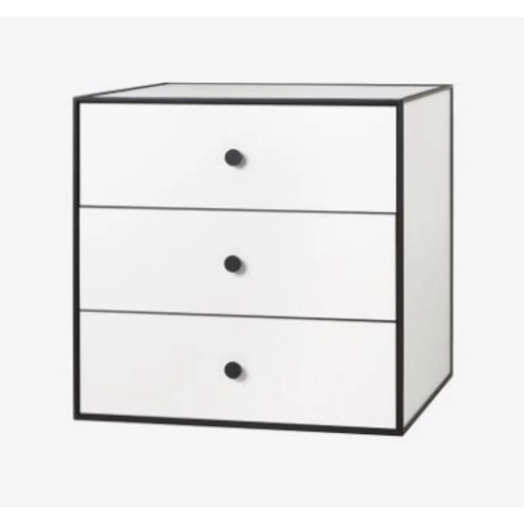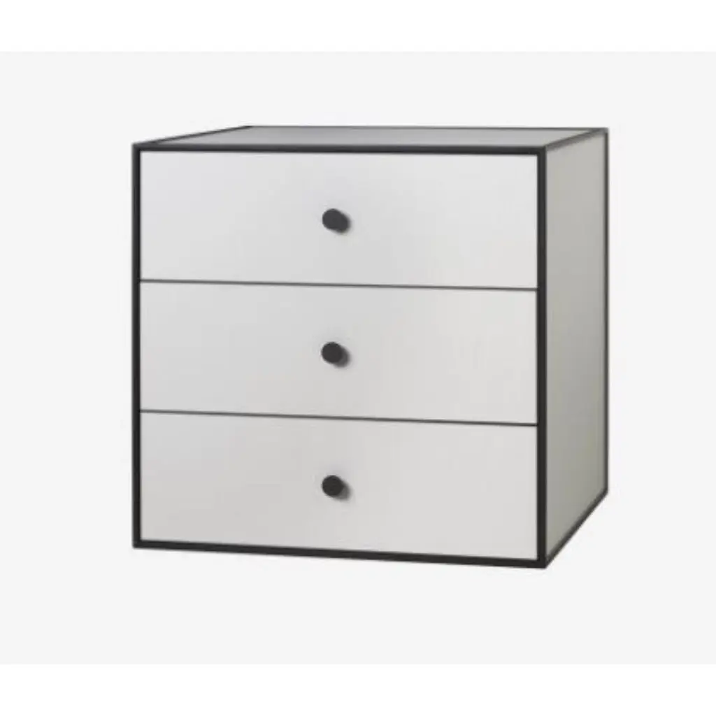 49 Smoked oak frame box with 3 drawers by LassenDimensions: D 49 x W 42 x H 49 cm Materials: finér, melamin, melamin, melamine, metal, veneer, oakAlso available in different colors and dimensions. Weight: 24 KgBy Lassen is a Danish design brand focused on iconic designs created by Mogens and Flemming Lassen, founded by Lassens’ relatives in 2008. Brothers Mogens (1901-1987) and Flemming (1902-1984) Lassen are known as two of Denmark’s greatest architects and designers. Both were renowned pioneers of Danish functionalism and modernist architecture, honoured with numerous prestigious medals and awards. Headed by Mogens Lassen’s grandson Søren Lassen, By Lassen carries on the brothers’ design philosophy by manufacturing their iconic designs as well as products by other designers that complement the Lassen’s functionalist style. The company’s mission is to continue the tradition of timelessness, functionality and quality, and to introduce the Lassen’s design heritage to new generations.