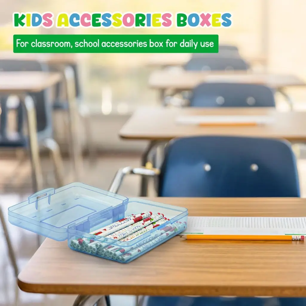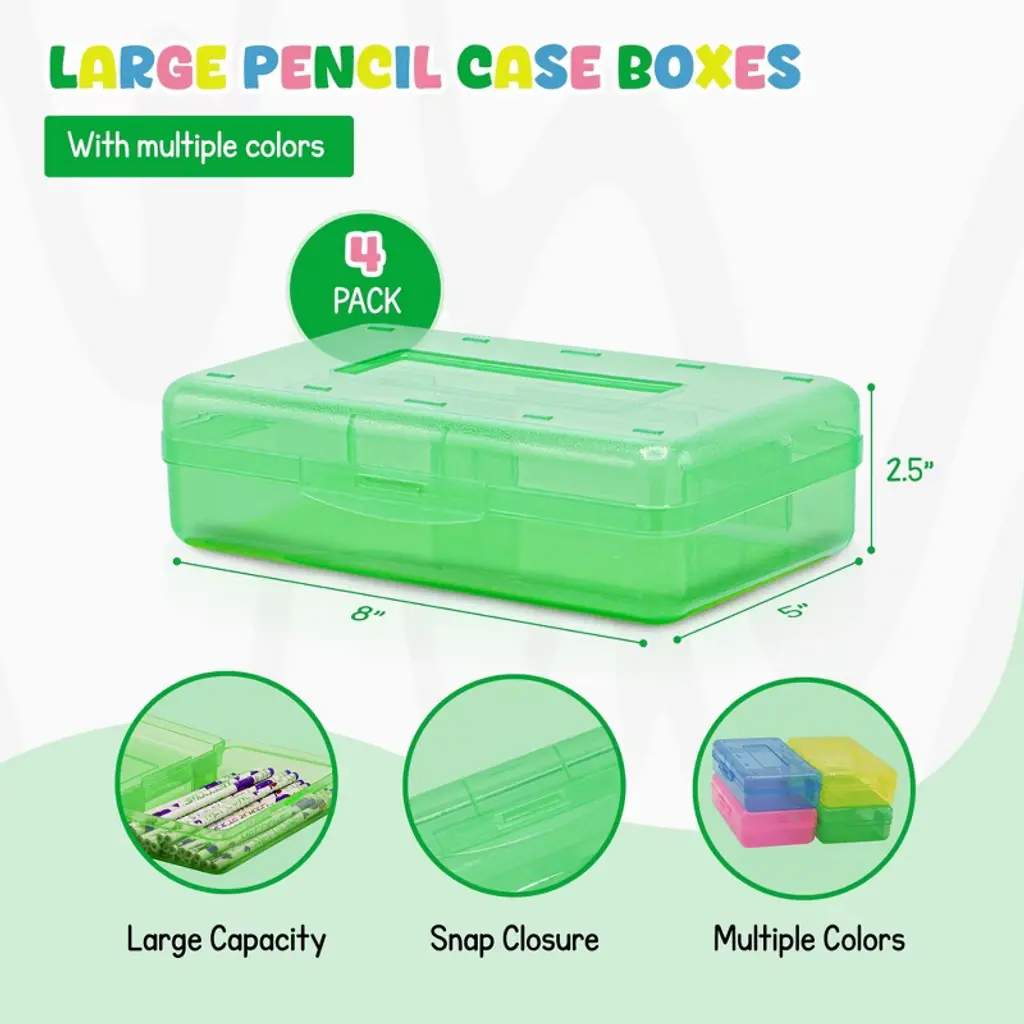 4E's Novelty 4 Pack Large Pencil Case Boxes, Pencil Boxes Bulk Classroom, Teacher Containers Box