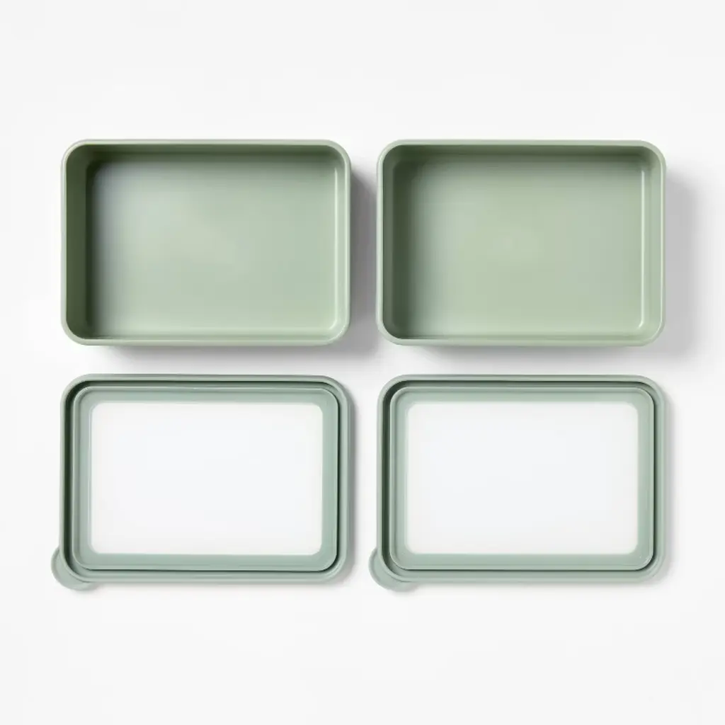 4Pc (Set Of 2) 3C Plastic Rectangular Food Storage Container Set Green - Figmint™