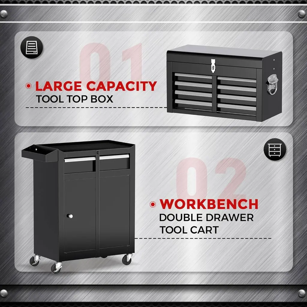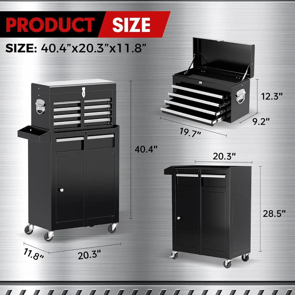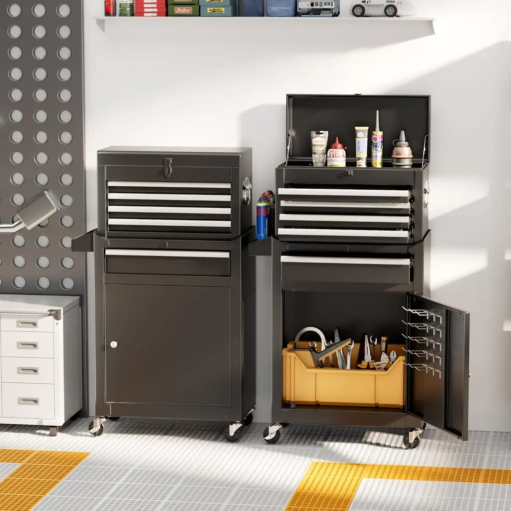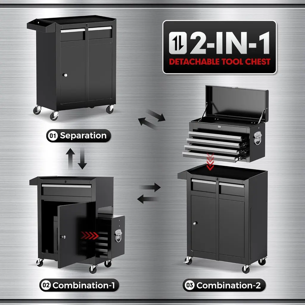 5 Drawer 2 In 1 Rolling Tool Chest Cabinet Garage Storage Toolbox With Detachable Top Tool Box And Universal Lockable Wheels - Black