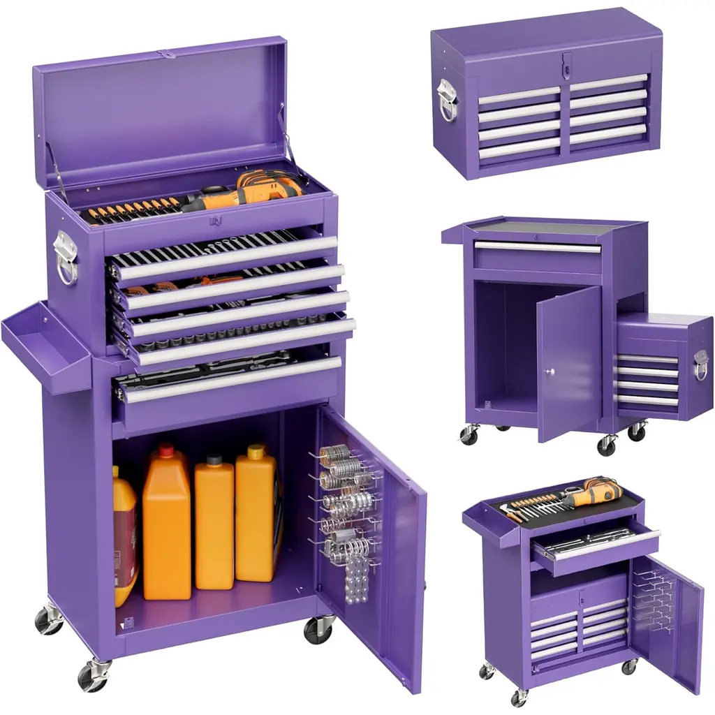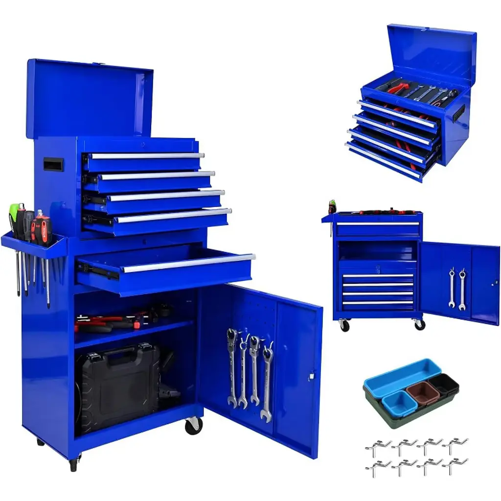 The rolling tool chest with drawers is secure, the main body is made of high-strength cold-rolled steel plate with high-quality materials and solid technology. The surface of the tool chest is coated with anti-corrosion and anti-rust coating, which makes it more durable and suitable for indoor and outdoor scenes. In addition,there are EVA liners inside every drawer to prevent scratches on the drawers and tools. The tool chests with 4 universal wheels make it easy to move around, in addition 2 of the wheels have a locking function to keep it in a fixed position while ensuring safety. The wheels are made of rubber and plastic composite materials. It has excellent wear resistance. With the help of the universal wheel, it provides great convenience for the tool chest to move, and adapt to a variety of working environments.Features: Package Includes: