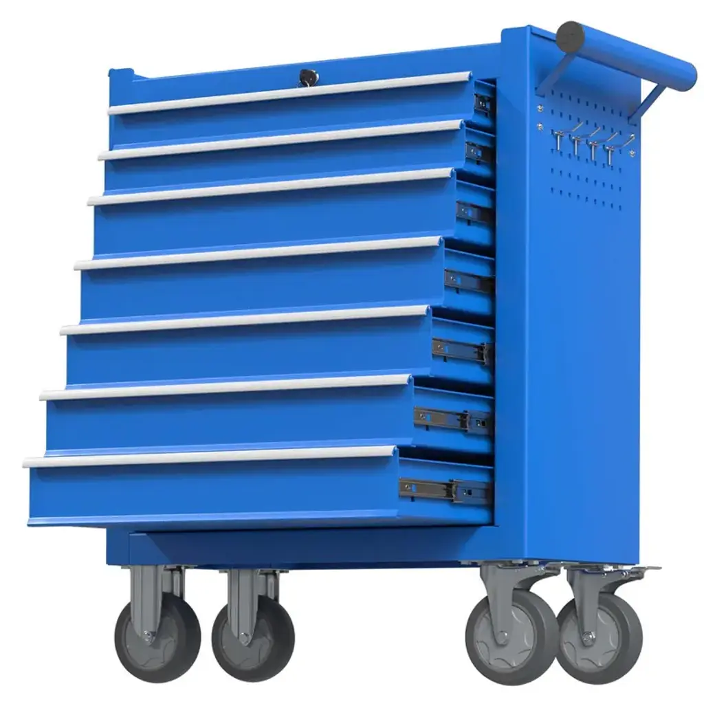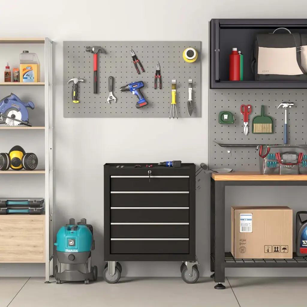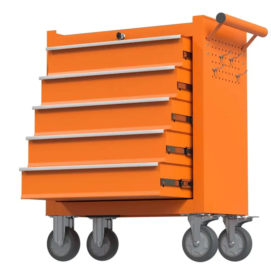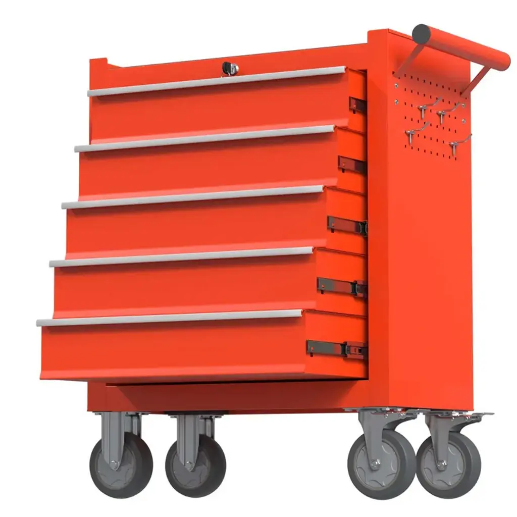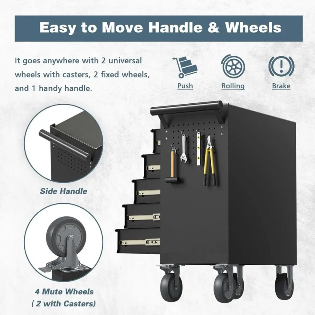 When you want to use a tool and can't find it? Are your tools scattered all over the place? Did you give up because you spent a long time looking for a tool and didn't find it? If you have any of the above questions, our toolbox is the perfect solution to your problem. Upgrade your workshop with our versatile Tool Chest, designed to meet all your tool storage needs. Product Description:Product Dimensions: 12.99"D x 24.41"W x 31.1"H inchesMaterial: Alloy SteelItem Weight: About 46.08 poundsFeatures:【Ample Storage】: Comprising five drawers, this tool chest provides dedicated space for tools of all sizes. Keep your workspace organized and clutter-free.【Drawer Liners Inlcuded】: The drawers come equipped with non-slip liners, ensuring your tools stay securely in place. Protect your valuable tools from scratches and damage.【Ball-Bearing Slides】: Thanks to the ball-bearing slides, each drawer effortlessly glides open and closed. Experience smooth and quiet operation every time.【High Mobility】 : Move your tools with ease using the four silent wheels, including two swivel casters with brakes and two fixed casters. The widened side handle adds convenience to transportation.【Durable Construction】: Crafted from ultra-hard cold-rolled steel, the tool chest is built to withstand heavy use. The surface features a rust-resistant and corrosion-resistant coating, making it easy to clean and maintain.【Multiple Purpose】: Suitable for various work environments, this tool chest makes for an ideal Christmas or New Year's gift for fathers, boyfriends or husbands who love working with their hands.【Easy Assembly】: Comes pre-assembled, just need to install the wheels.